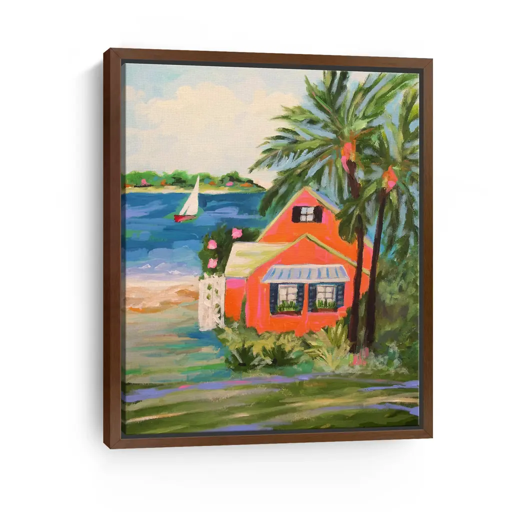 Hibiscus Beach House Canvas Giclee Wall Art - Framed / Walnut / 16x20