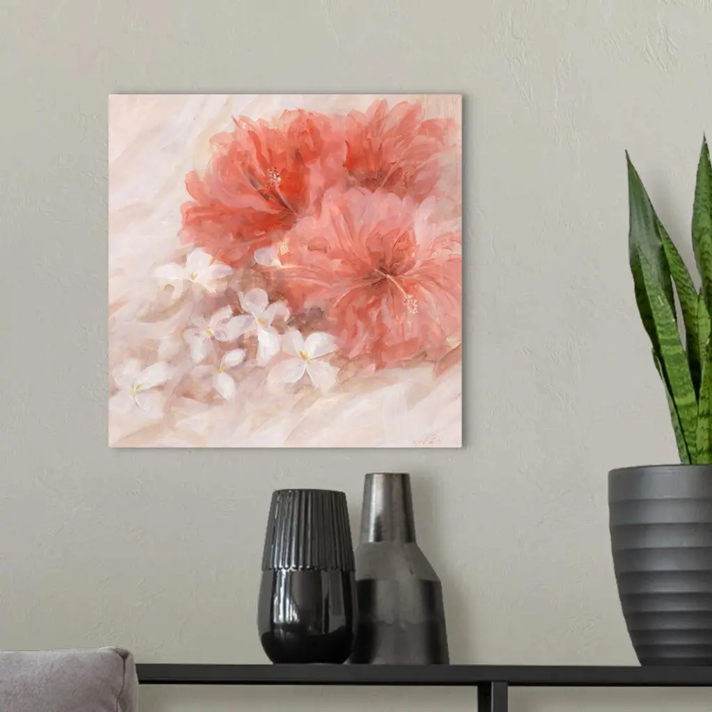 Contemporary painting of a group of hibiscus.