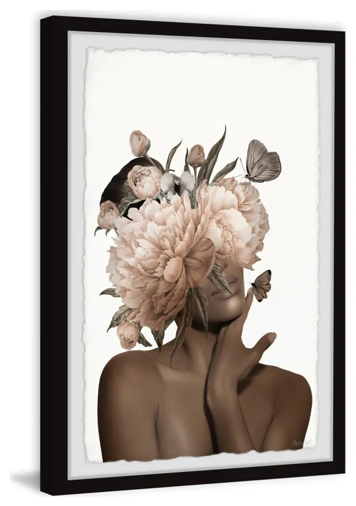 This soft, brilliant photographic print features a woman with pale pink flowers blooming and overlapping her face. Proudly printed in the USA, this piece is printed on high quality archive paper and professionally hand-framed. With wall-mounting hooks included, this artful accent is ready to hang up as soon as it reaches your front door.- Top quality Giclee print on high resolution Archive Paper- Hand cut deckled edges- High quality durable non-warping frame- Finished under shatter resistant plexiglass- Arrives ready to hang- Includes a certificate of authenticity- Printed in the USA