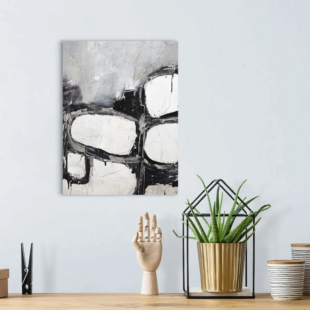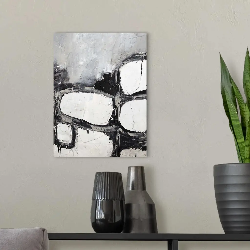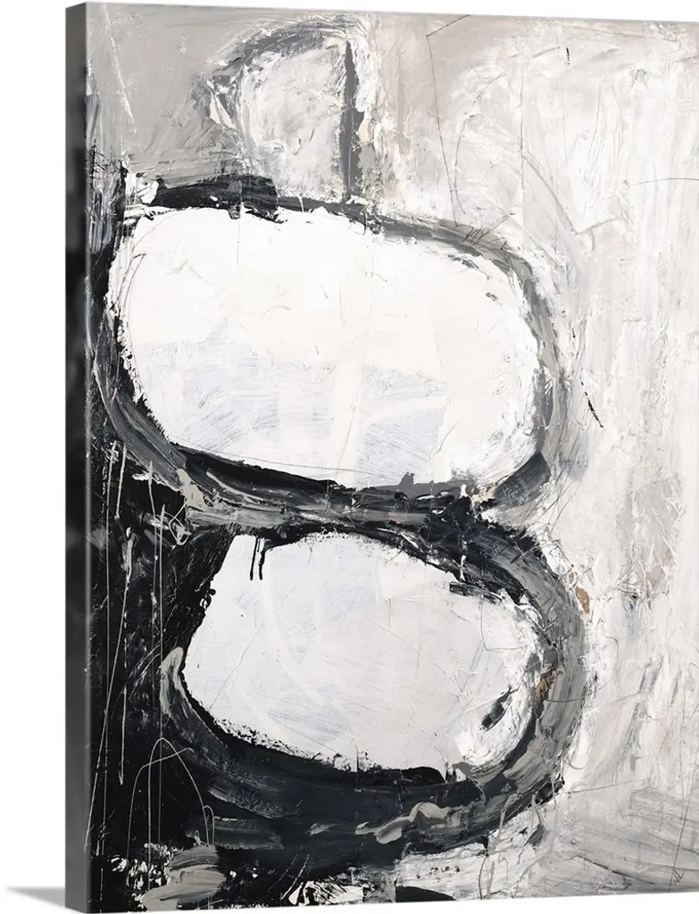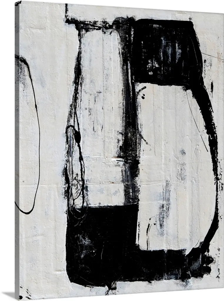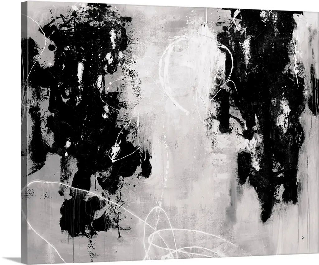 Contemporary abstract painting in shades of black and white.