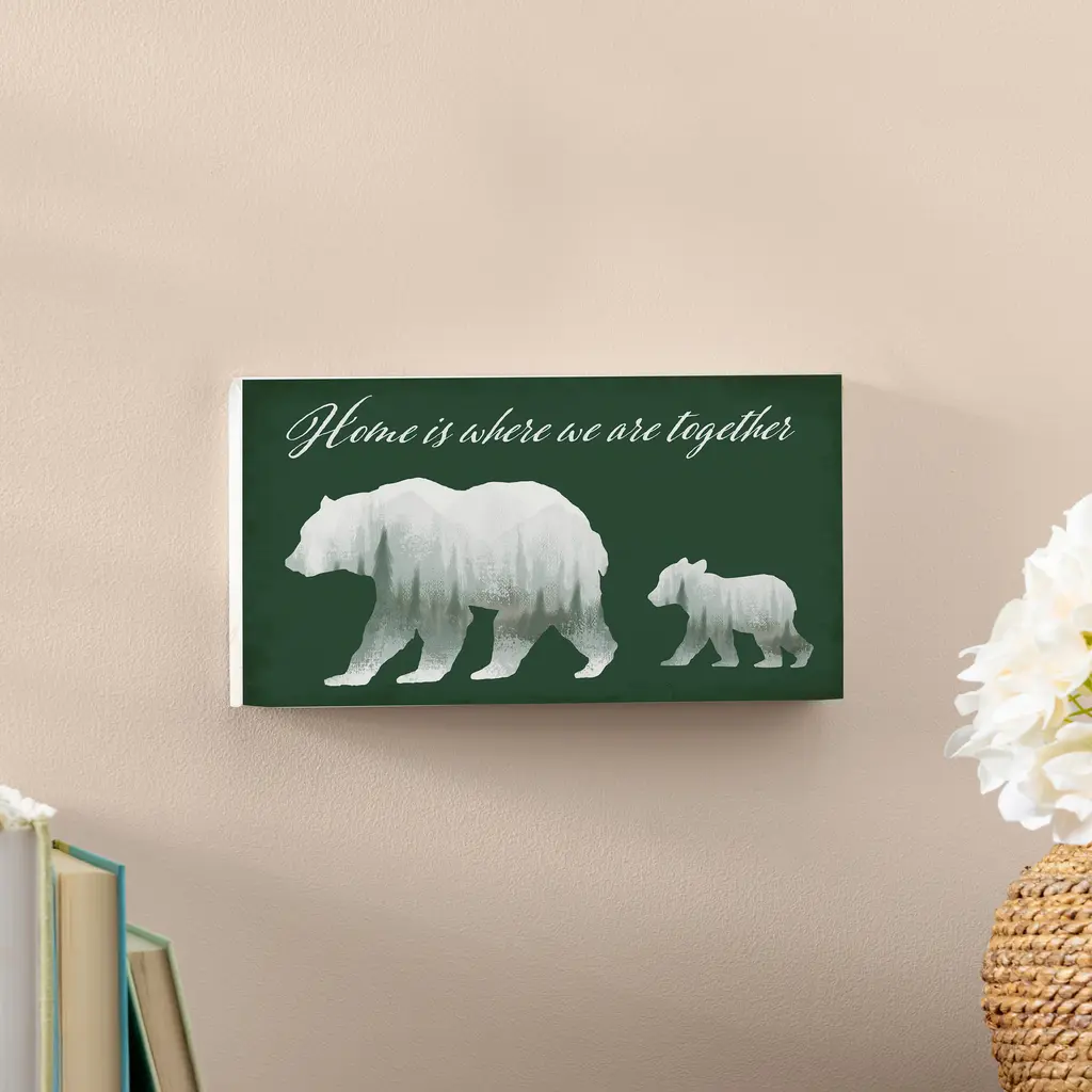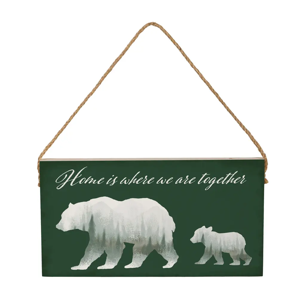 High Country Painting Wood Hanging Sign W/ Rope, Bear "Home Is Where We Are Together", 11"x6"