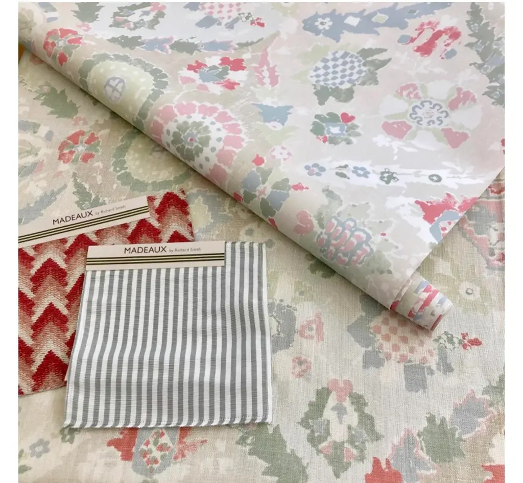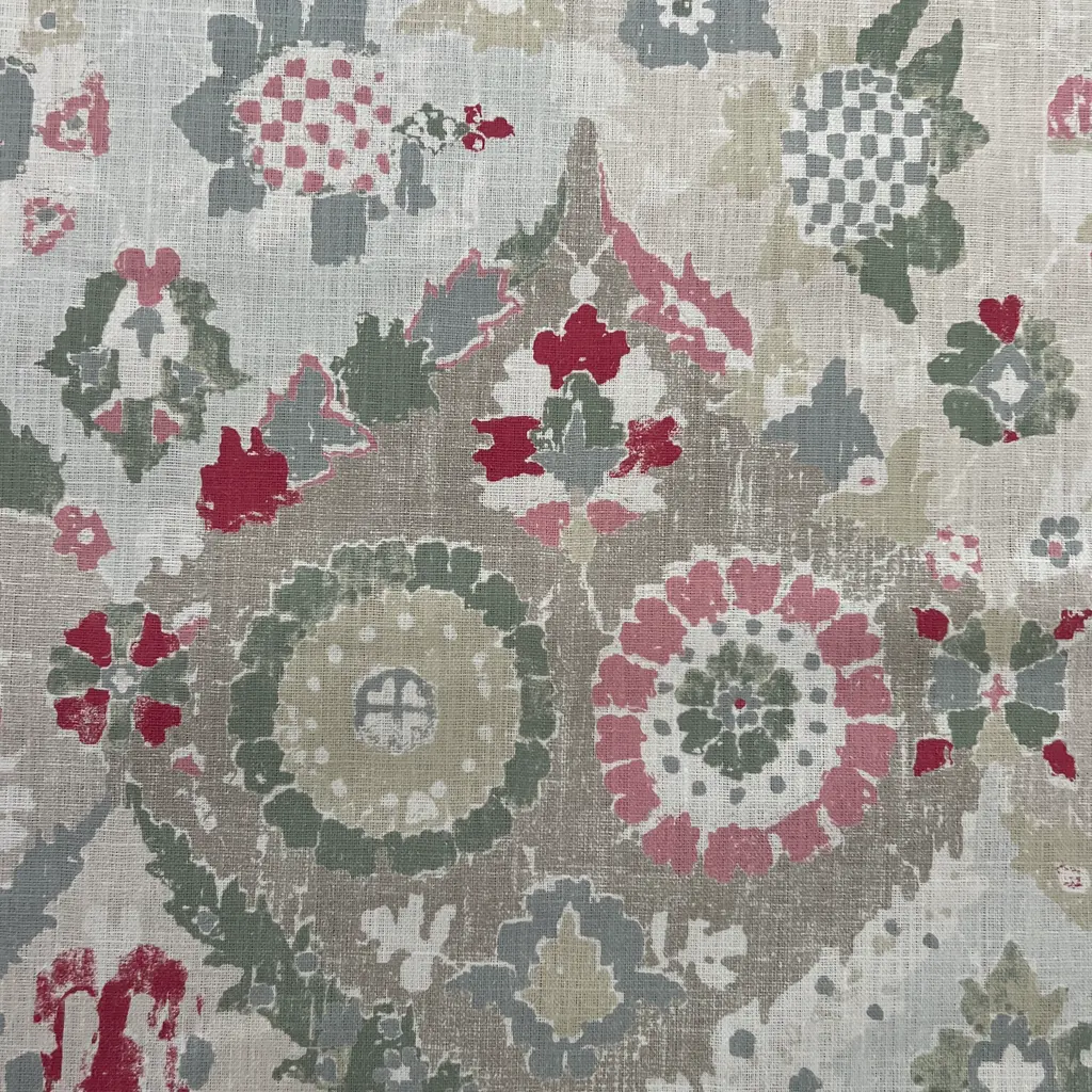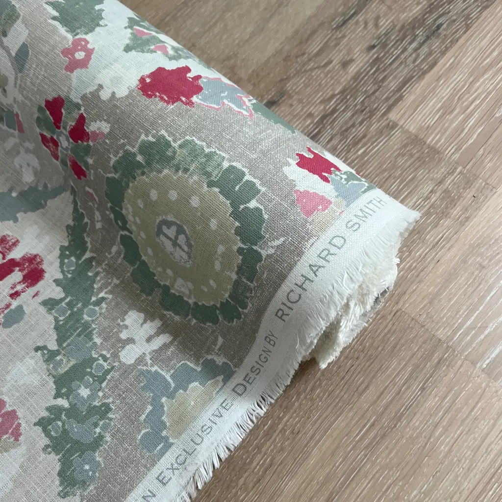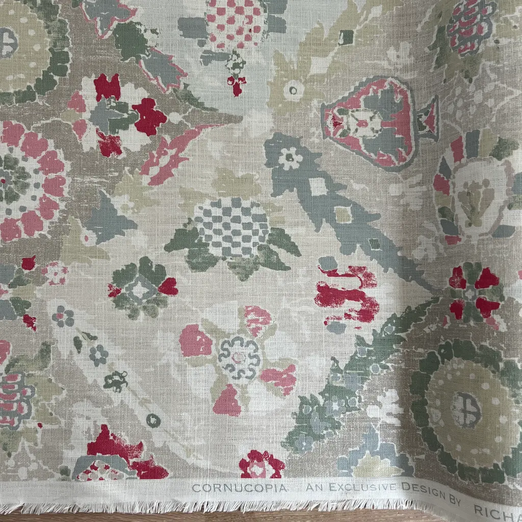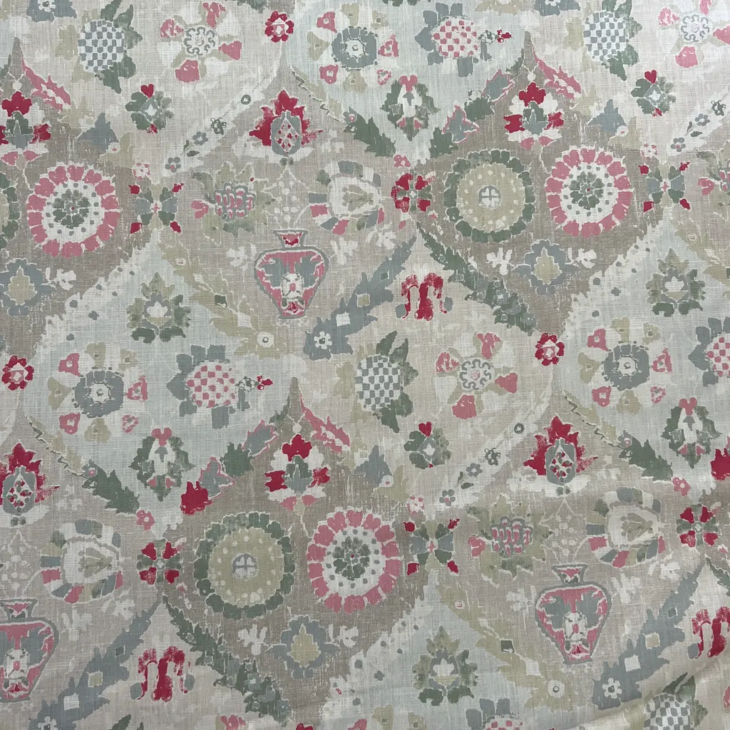 High End Designer Madeaux By Richard Smith Cornucopia Rosewater Hand Printed Linen Fabric- 3 Yards