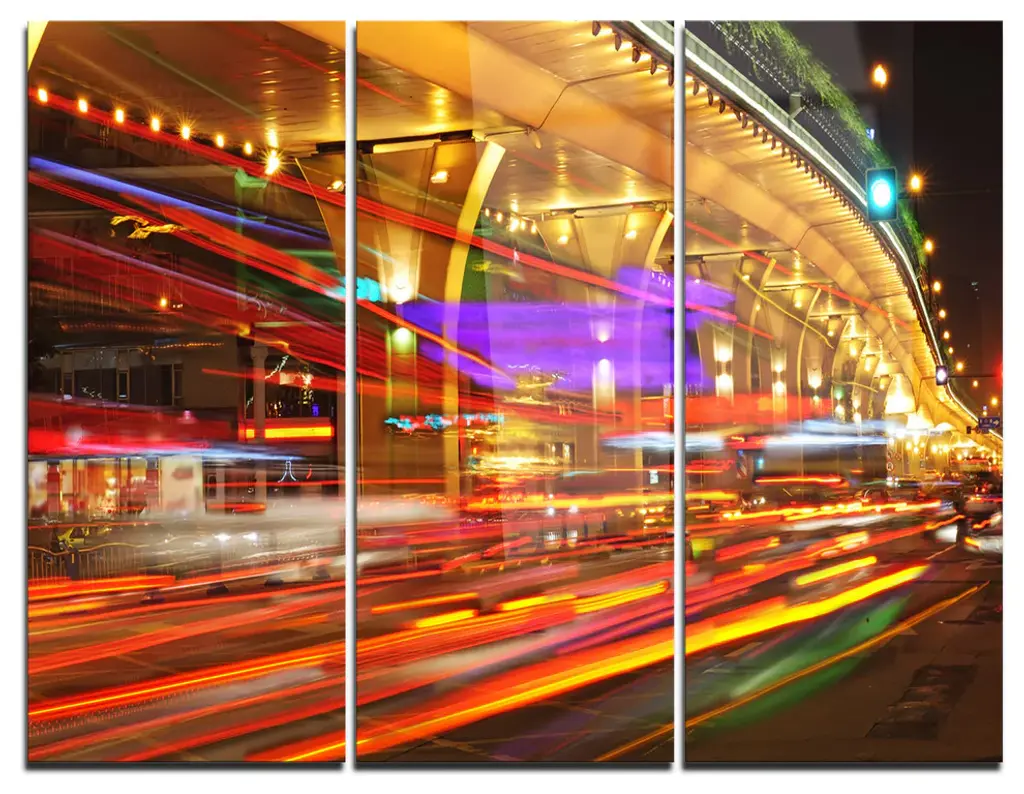 "High Speed Traffic Trails" Digital Metal Wall Art, 3 Panels, 36"x28"