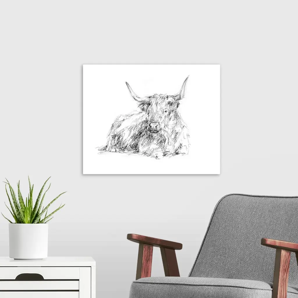 Highland Cattle Sketch I wall art for home and office decor. Discover canvas art prints, photos, mural, big canvas art and framed wall art in GreatBigCanvas.com's varied collections.