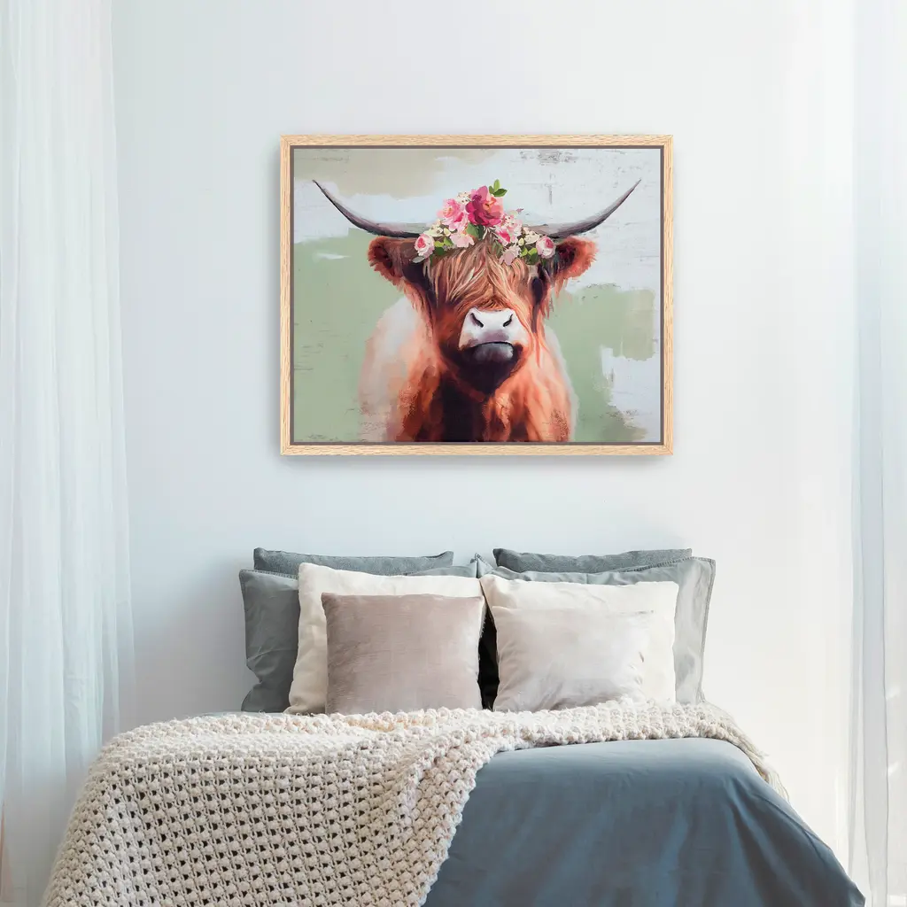 Highland Cow Canvas Giclee Wall Art - Framed / Black / 24x30