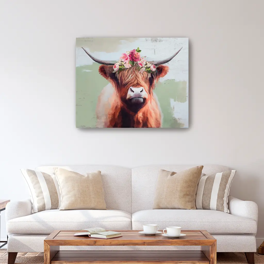 Bold strokes and earthy hues make this cow canvas print a striking homage to rural life and quiet strength. Our Gallery Wrap Canvas Prints are proudly assembled with high quality materials in California, USA. Each piece is printed on a thick, archival grade canvas using Giclee technology. It is then hand-stretched by our experienced artisans over solid wood bars, which will not warp over time. The final product is a piece personally crafted for you to confidently display on your wall. Care and Assembly: Ensure that the location of your piece has little to no exposure to heat, sunlight, and moisture. Wipe clean, only if needed. Each piece includes a sawtooth hanger to hang on your wall horizontally.
