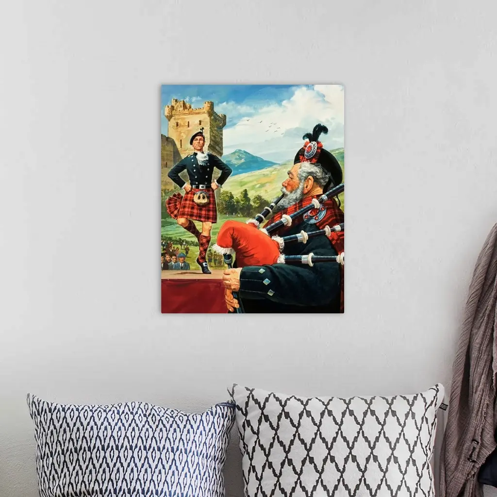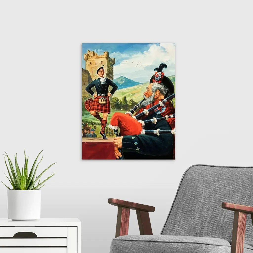 Highland Dancing. Original artwork for illustration on p14 of Look and Learn issue no 351 (5 October 1968).