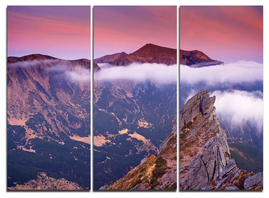 "Highrise Green Mountains" Photo Metal Wall Art, 3 Panels, 36"x28"