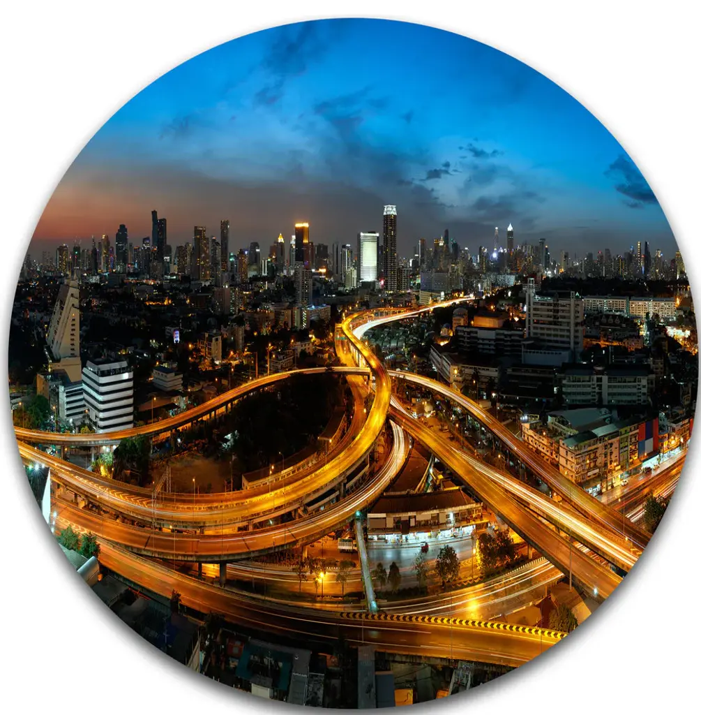 Highway And Main Traffic Bangkok, Cityscape Disc Metal Wall Art, 23"