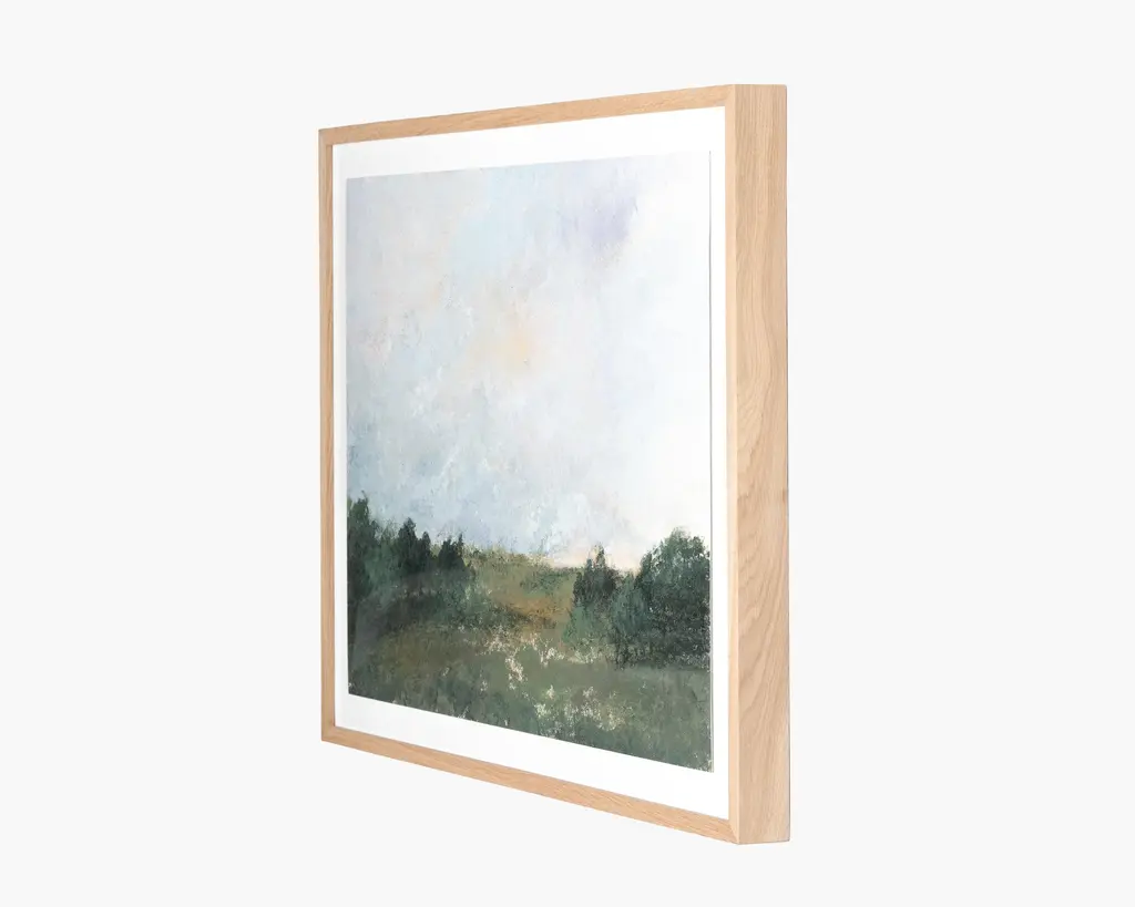 Inspired by the Texas Hill Country, Austin-based artist and registered nurse Aileen Fitzgerald paints atmospheric landscapes reminiscent of early Impressionism with a heavy emphasis on light. Framed within vertical grain white oak for a museum-quality look. Handmade in Austin, Texas.Mounting hardware is included with detailed instructions. Size shown is print size, add frame thickness to print size for total frame size Weight: 20 lbs Matte Paper Acrylic Glass Receives Threshold delivery