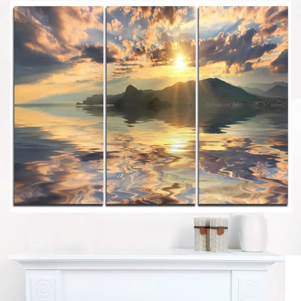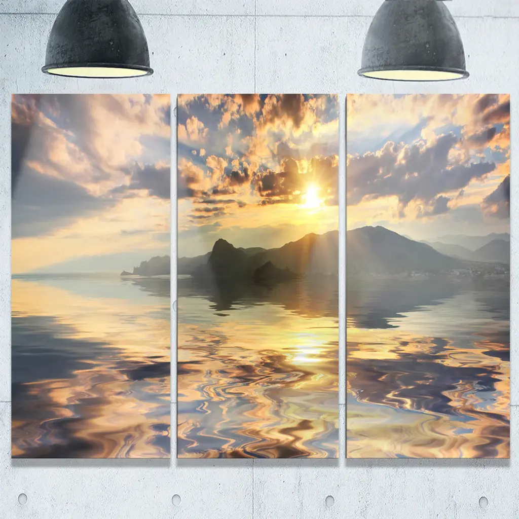 "Hill Overlooking The Seaside Town" Metal Wall Art, 3 Panels, 36"x28"