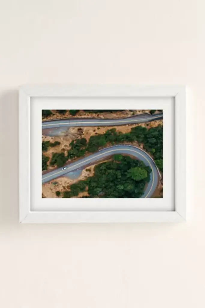 Art print by Hillary Murphy featuring a photograph of a winding road. Printed on archival paper made from cotton pressed in Italian mills, this high-quality art print is available in sizes and frames just right for your space. First select your frame (or go frameless), then select your size. **About the Frames** \- The exact width of each frame may vary slightly \- All frames are manufactured in the US \- Matte frames are durable poly \- Wood frames are recycled wood \- All are fitted with protective plexiglass \- Finished with wood moldings, archival backer and protective bumpers **Size** \- Available in multiple sizes \- Use the Size Guides to find the size that fits your space **Content + Care** \- Wipe clean \- Made in the USA