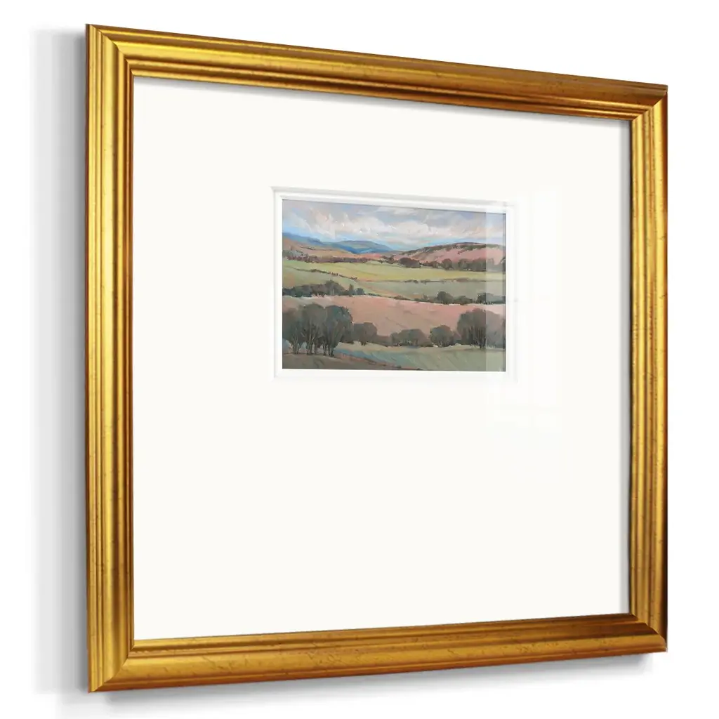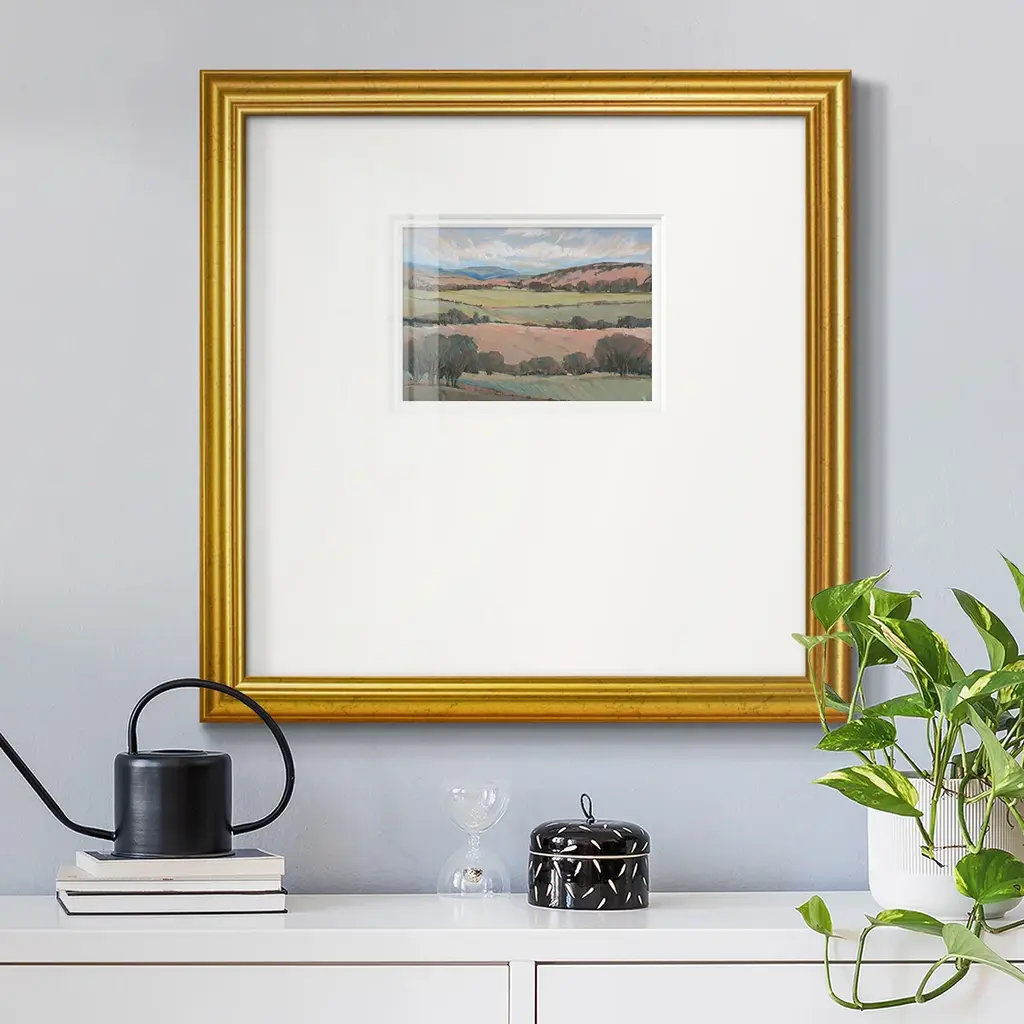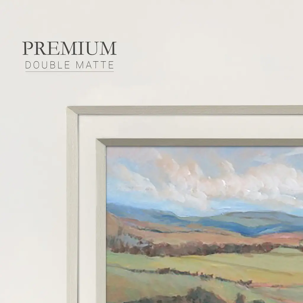 Hilly Countryside IPremium Framed Print A framed cold pressed paper print featuring superior double matting and quality frame. 2 SIZES AVAILABLE 16''X16''' - Overall Size 20''X20''' - Overall Size Each piece is made to order. Each piece comes with hanging hardware. Made in the USA Ready to Hang Giclee Paper Print Plexiglass Beveled Matt Board Double Matte Board