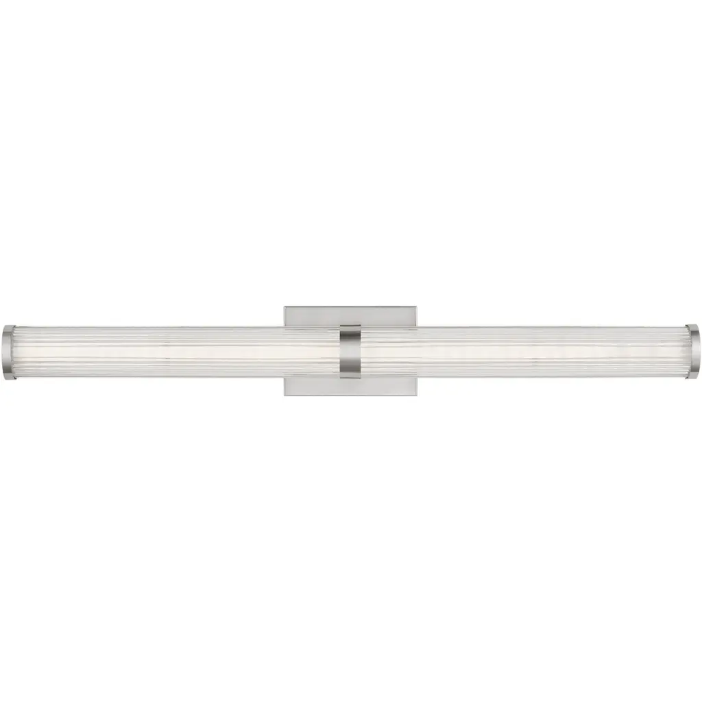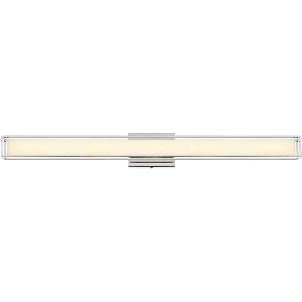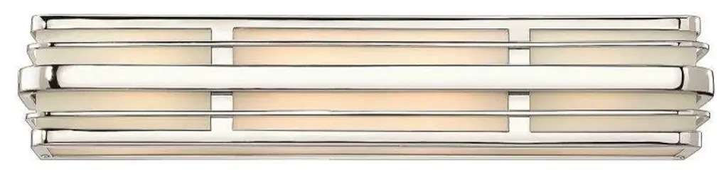 White etched panel glass glows softly behind a retro-inspired chrome finish frame in this contemporary vanity light design. The six light fixture is ideal for placement above a mirror or sink area. From the Winton collection of Hinkley lighting.