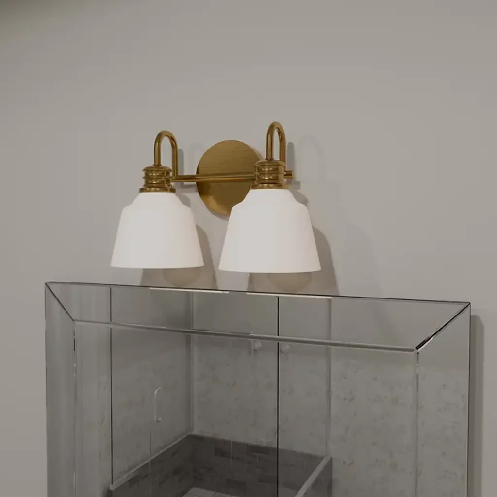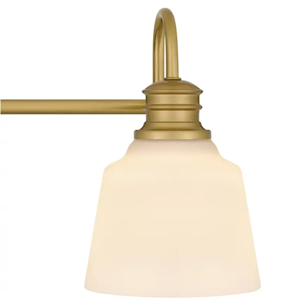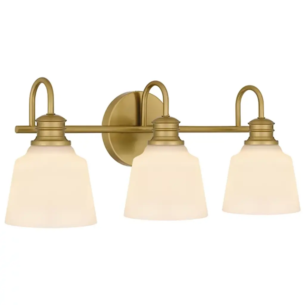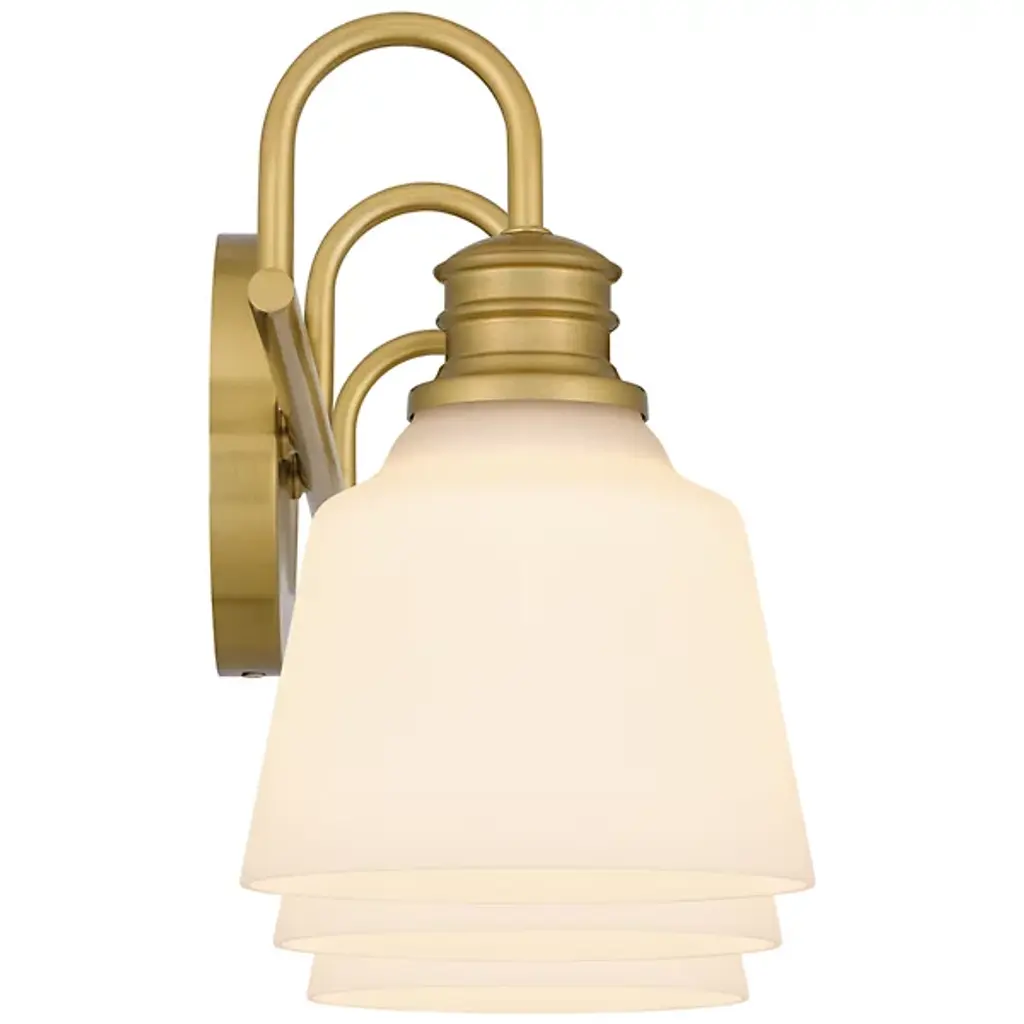 Start your mornings with the Hinton Vanity Light from Quoizel. This transitional vanity light boasts opal-etched glass shades with tapered crowns held in place by a looping steel framework. A round backplate provides support as LEDs emanate an ambient glow throughout your space. Effortlessly adjust the brightness level using a separately sold ELV dimmer and beautify in Art Deco style. Hinton is well-suited for placement above wall-mounted mirrors.