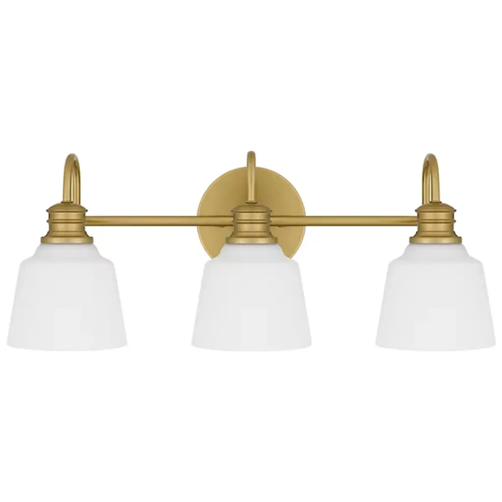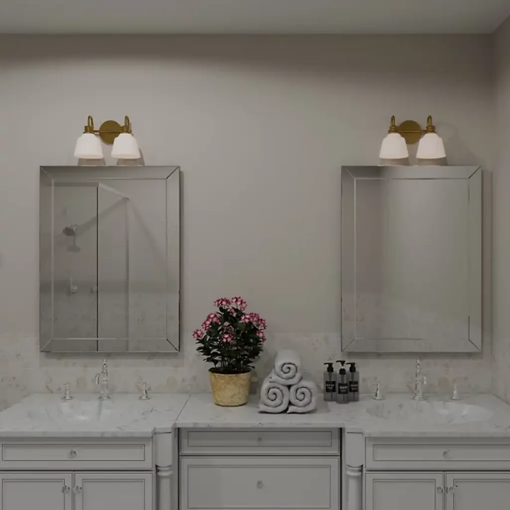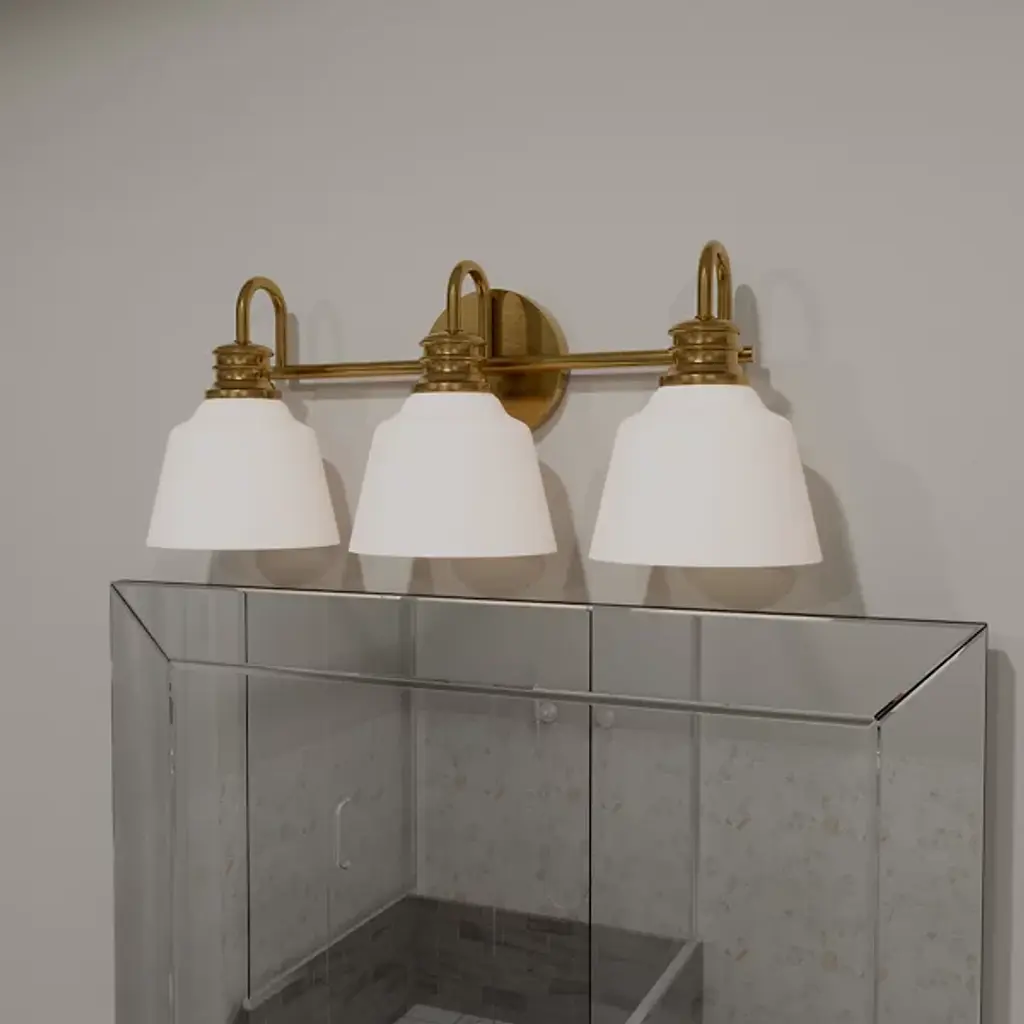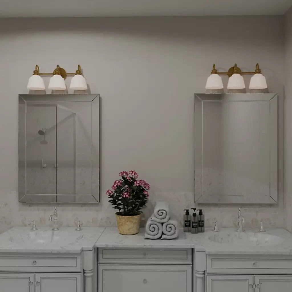 Start your mornings with the Hinton Vanity Light from Quoizel. This transitional vanity light boasts opal-etched glass shades with tapered crowns held in place by a looping steel framework. A round backplate provides support as LEDs emanate an ambient glow throughout your space. Effortlessly adjust the brightness level using a separately sold ELV dimmer and beautify in Art Deco style. Hinton is well-suited for placement above wall-mounted mirrors.