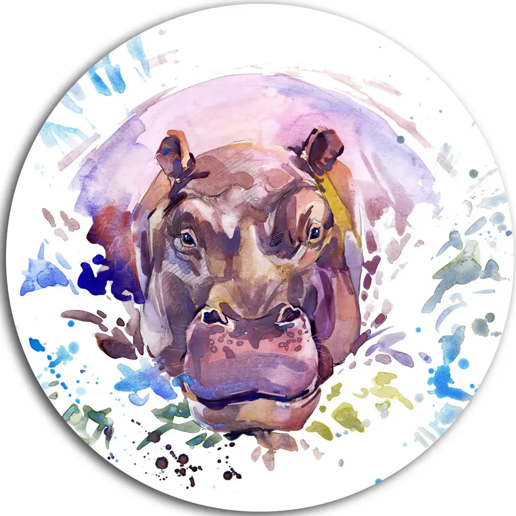 Bring contemporary abstraction to your home with this large 36W x 28H Metal Wall Art. This Hippopotamus Watercolor Metal Artwork makes it the focal point of any room or office. - White gloss coating ensures colors are extra vibrant with light reflection.- Aluminum grade sheet metal with 1 inch mounting frame on the back giving the illusion that the artwork is floating on the wall..- Mounting brackets are included along with instructions.- High quality digital images are created directly into a glossy aluminum panel producing a stunning and captivating print into the glossy finish of the metal.- Water, fire and scratch resistant HD aluminum panels.- Looks better than any photo paper and guaranteed to last at least 20 years- Easy to clean with a microfiber cloth. Colors are far superior to regular canvas art. - Easy to hang