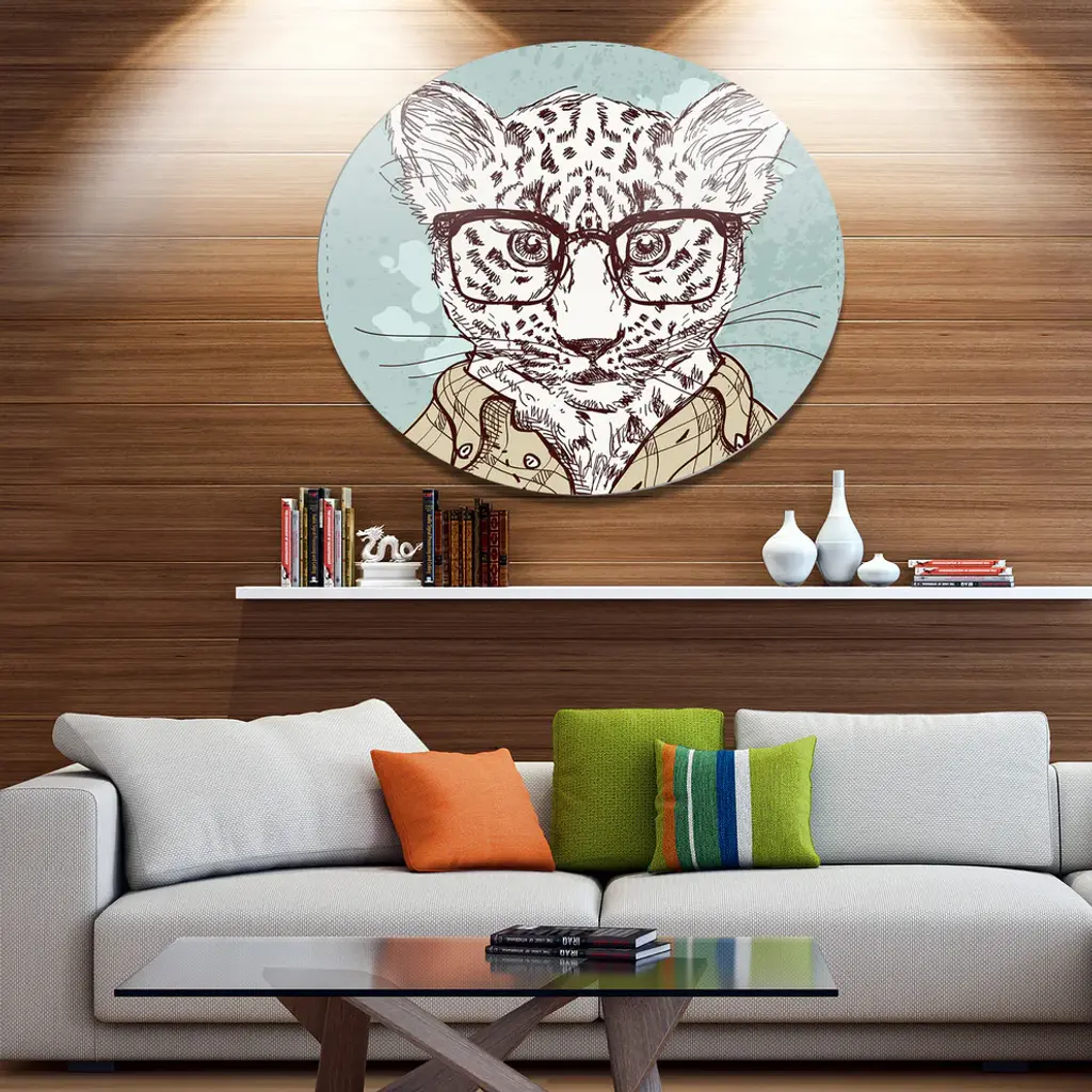 Hipster Leopard With Glasses, Animal Disc Metal Artwork, 11"