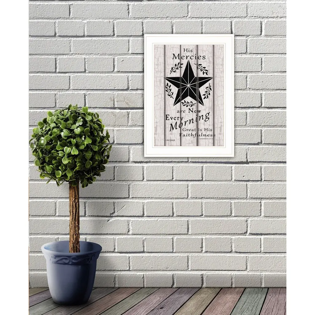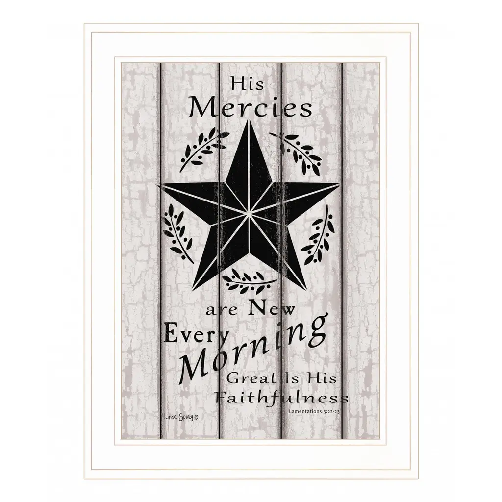 This his mercies are new every morning 2 white framed print wall art is the perfect way to celebrate and decorate for the Christmas Season. This print is a visual artistic expression that allows you to decorate your space in style. Reproduced for you on wood, this hanging decorative accent will be a trendy and fashionable way to dress your walls in a rustic and modern farmhouse vibe. Hang on your wall to add some up to date fashion and decoration. Instantly liven up your space with this art that brings color and dimension to your walls. 21" H x 15" W x 1" D