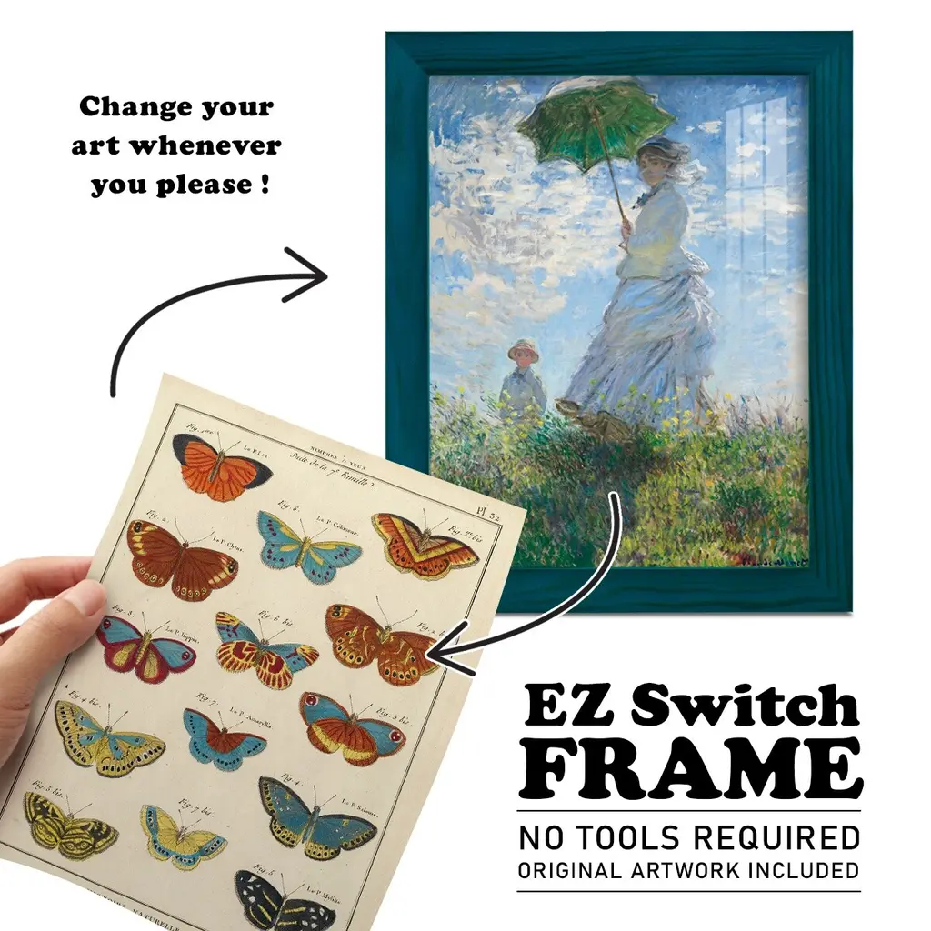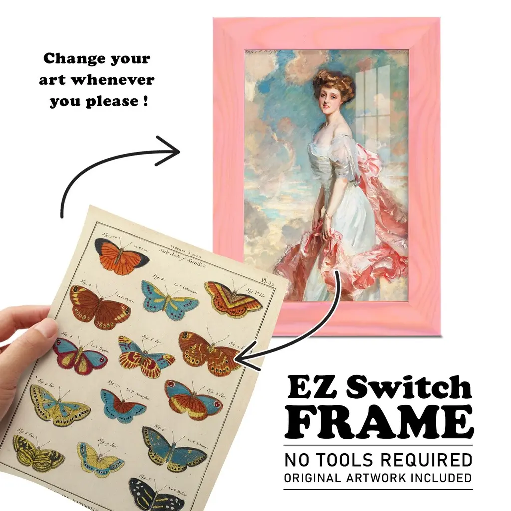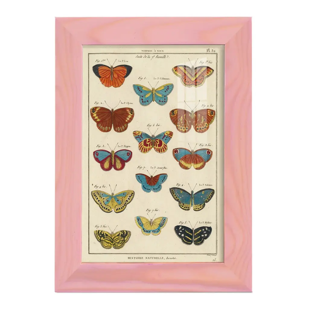 Histoire Naturelle Butterflies I -EZ SWITCH Framed Print w/glass-Cherry Red A delightful, framed print. Featuring a solid wood frame with real wood glass. This premium print is giclee quality. In addition, every frame features a removable back and table top stand. This allows you to change your art in the future or to just stand the art on a table for a new look. We are sure you'll enjoy our new series of EZ SWITCH Framed Art. Solid Wood Frame Real Glass Removable / Replaceable Art Built in Tabletop Stand Sizes range from 4x6 up to 12x15 - buy just one or pair them up as sets as you see fit.