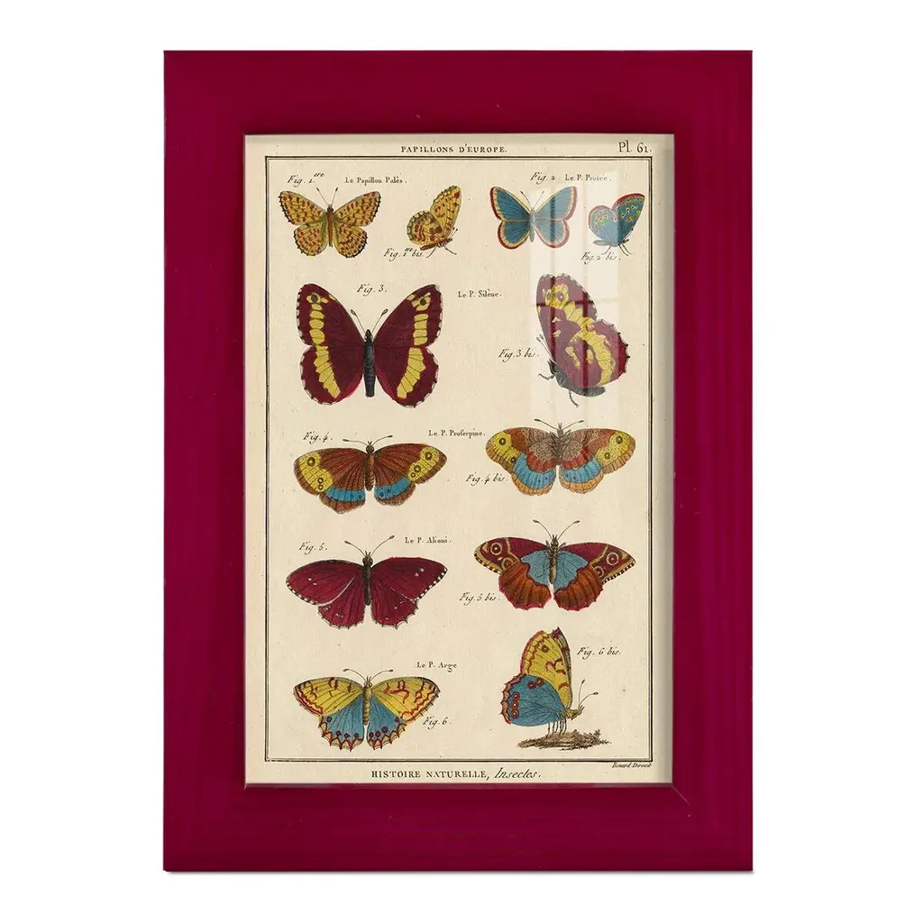 Histoire Naturelle Butterflies IV -EZ SWITCH Framed Print w/glass-Cherry Red A delightful, framed print. Featuring a solid wood frame with real wood glass. This premium print is giclee quality. In addition, every frame features a removable back and table top stand. This allows you to change your art in the future or to just stand the art on a table for a new look. We are sure you'll enjoy our new series of EZ SWITCH Framed Art. Solid Wood Frame Real Glass Removable / Replaceable Art Built in Tabletop Stand Sizes range from 4x6 up to 12x15 - buy just one or pair them up as sets as you see fit.