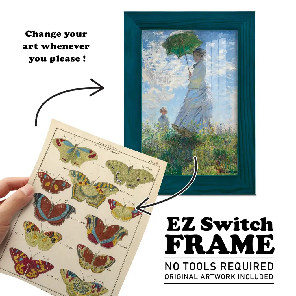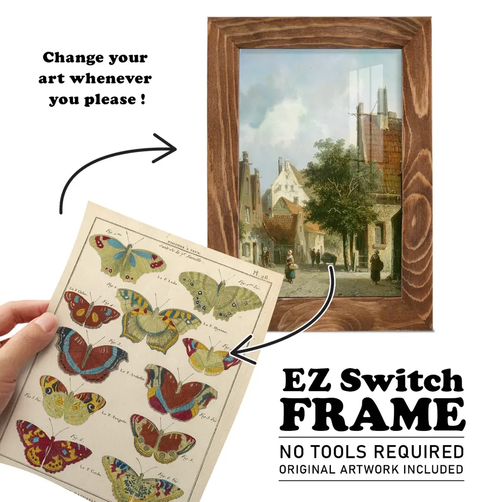 Histoire Naturelle Butterflies V -EZ SWITCH Framed Print w/glass-Cherry Red A delightful, framed print. Featuring a solid wood frame with real wood glass. This premium print is giclee quality. In addition, every frame features a removable back and table top stand. This allows you to change your art in the future or to just stand the art on a table for a new look. We are sure you'll enjoy our new series of EZ SWITCH Framed Art. Solid Wood Frame Real Glass Removable / Replaceable Art Built in Tabletop Stand Sizes range from 4x6 up to 12x15 - buy just one or pair them up as sets as you see fit.