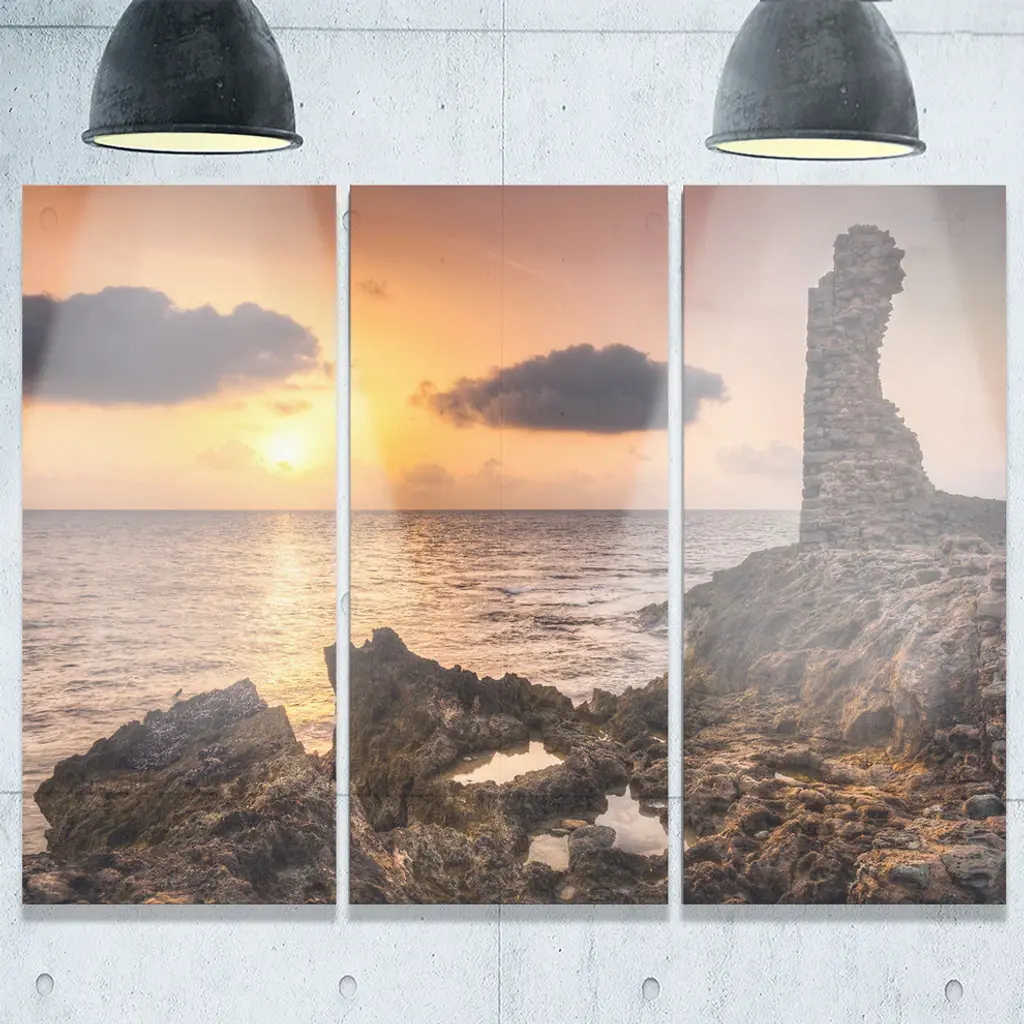 "Historic Ruins At Sunset Africa" Metal Wall Art, 3 Panels, 36"x28"