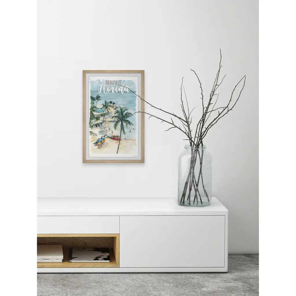 Inspired by the warm waters and towering trees found only on the coast of Florida, this print features a Florida beach, a line of boats, and a tribute to its beauty. Proudly printed in the USA, this piece is printed on high quality archive paper and professionally hand-framed. With wall-mounting hooks included, this artful accent is ready to hang up as soon as it reaches your front door. • Top quality Giclee print on high resolution Archive Paper • Hand cut deckled edges • High quality durable non-warping frame • Finished under shatter resistant plexiglass • Arrives ready to hang • Includes a certificate of authenticity • Printed in the USA