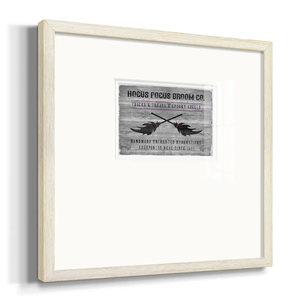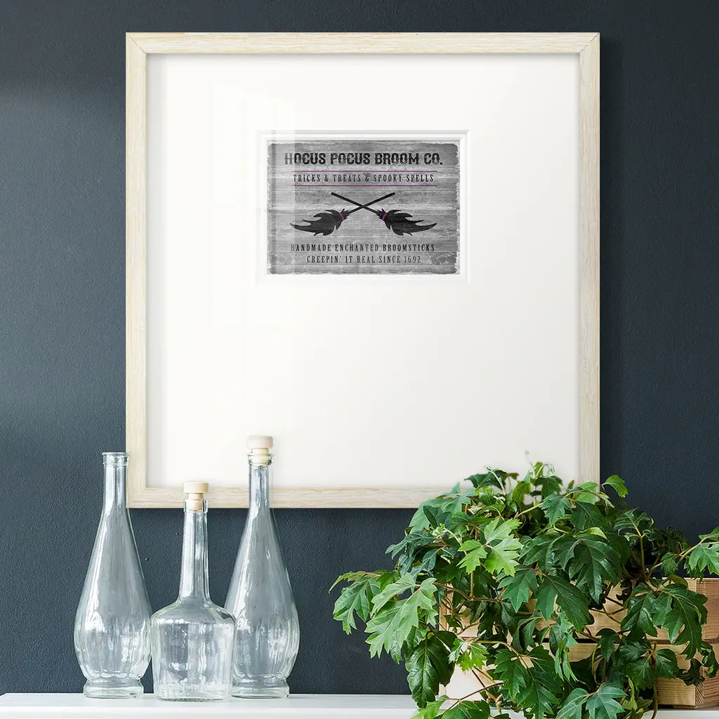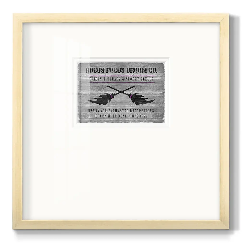 Hocus Pocus Broom CoPremium Framed Print A framed cold pressed paper print featuring superior double matting and quality frame. 2 SIZES AVAILABLE 16''X16''' - Overall Size 20''X20''' - Overall Size Each piece is made to order. Each piece comes with hanging hardware. Made in the USA Ready to Hang Giclee Paper Print Plexiglass Beveled Matt Board Double Matte Board