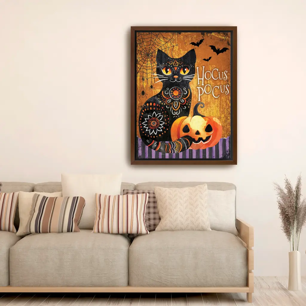 Hocus Pocus Cat Canvas Giclee - Framed / Dark Walnut / 18x24