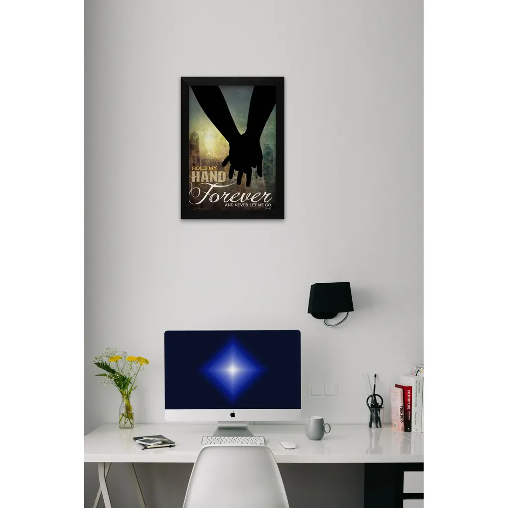 This hold my hand forever 1 black framed print living room wall art will add a beautiful decorative accent to your decor. This print is a visual artistic expression that allows you to decorate your space in style. Reproduced for you on paper, this hanging decorative accent will be a trendy and fashionable way to dress your walls. Hang on your wall to add some up to date fashion and decoration. Utilize this opportunity to create a focal point in the room with this fabulous wall decor option. 10" H x 14" W x 1" D