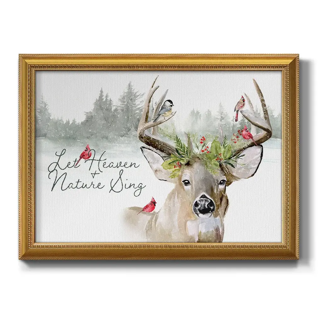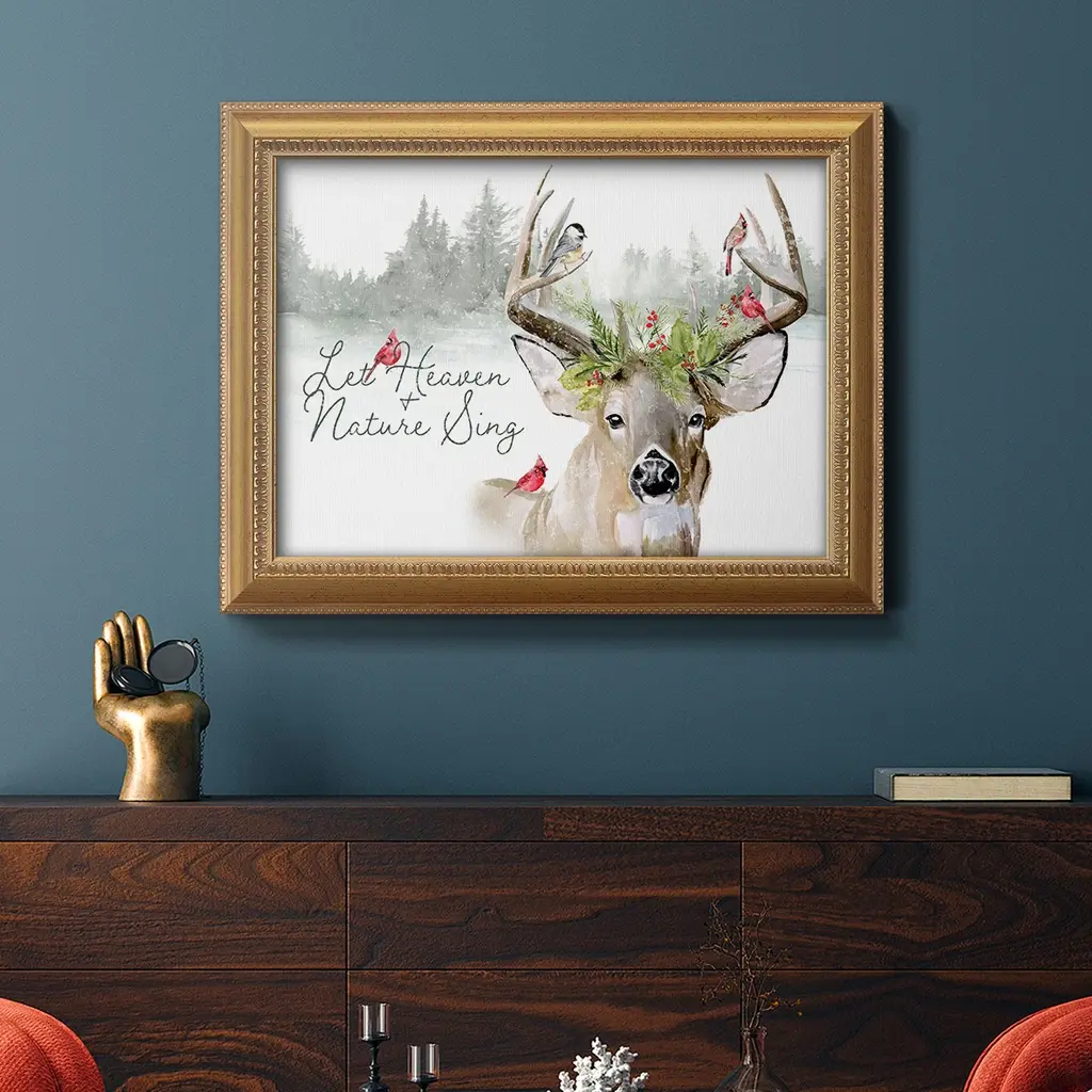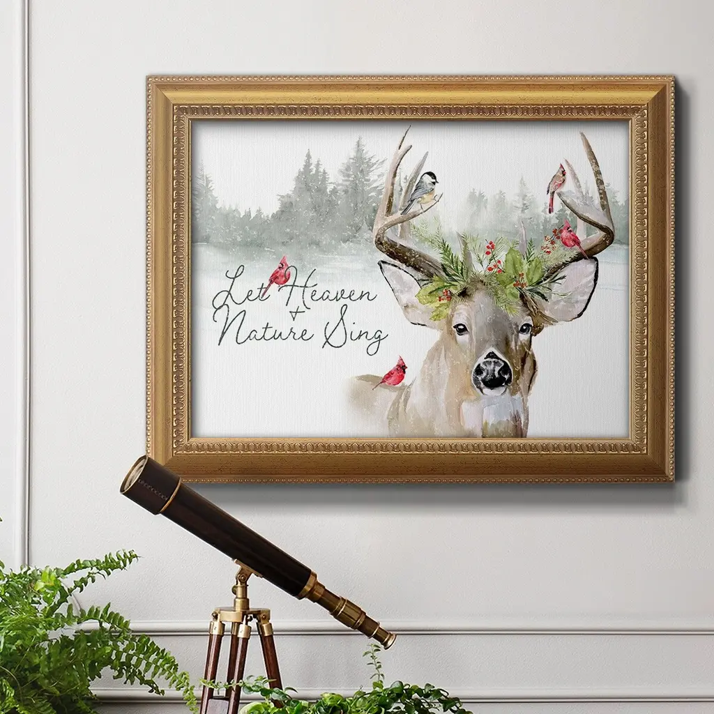 Holiday Deer Collection A Premium Framed Canvas- Ready to Hang A Premium Framed Canvas created to last. Framed in distressed wood and available in an array of sizes and colors Featuring a beveled a solid wood stretcher bar, each piece comes ready to hand 3 SIZES AVAILABLE 16''X20'' - Overall Size 18'X27'' - Overall Size 24''x36'' - Overall Size Each piece is made to order. Each piece comes with hanging hardware. Made in the USA Ready to Hang Giclee Paper Print Acrylic Glass Beveled Matt Board