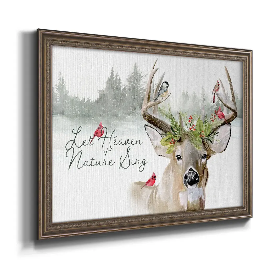 Holiday Deer Collection A Premium Framed Canvas- Ready to Hang A Premium Framed Canvas created to last. Framed in distressed wood and available in an array of sizes and colors Featuring a beveled a solid wood stretcher bar, each piece comes ready to hand 3 SIZES AVAILABLE 16''X20'' - Overall Size 18'X27'' - Overall Size 24''x36'' - Overall Size Each piece is made to order. Each piece comes with hanging hardware. Made in the USA Ready to Hang Giclee Paper Print Acrylic Glass Beveled Matt Board