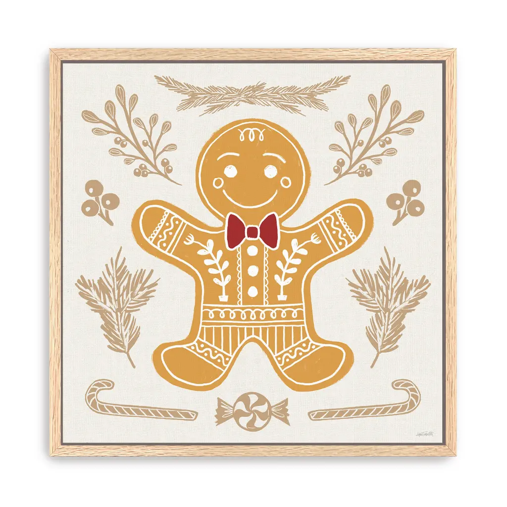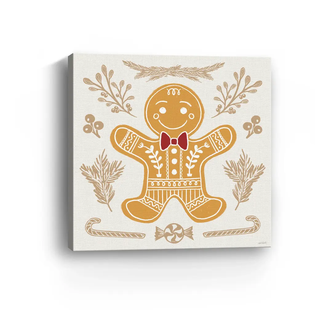 Celebrate the sweetness of the season with this charming gingerbread canvas print that brings holiday cheer to your walls. With warm tones and whimsical details, it’s a delightful accent for kitchens, entryways, or festive living spaces. Our Gallery Wrap Canvas Prints are proudly assembled with high quality materials in California, USA. Each piece is printed on a thick, archival grade canvas using Giclee technology. It is then hand-stretched by our experienced artisans over solid wood bars, which will not warp over time. The final product is a piece personally crafted for you to confidently display on your wall. Care and Assembly: Ensure that the location of your piece has little to no exposure to heat, sunlight, and moisture. Wipe clean, only if needed. Each piece includes hanging hardware to hang on your wall horizontally.