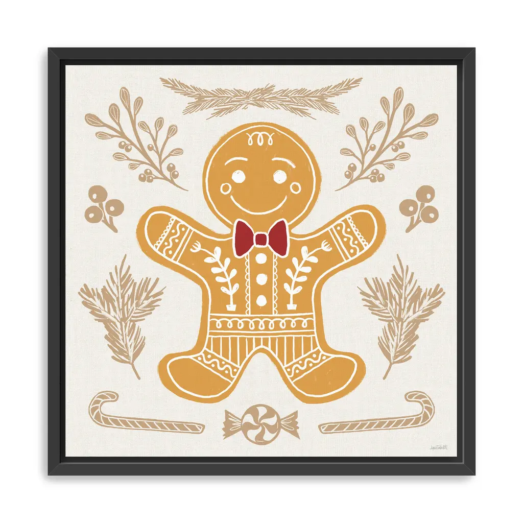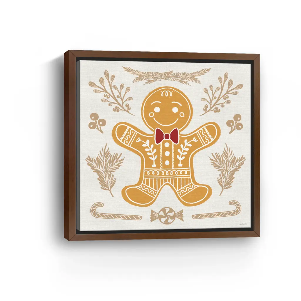 Celebrate the sweetness of the season with this charming gingerbread canvas print that brings holiday cheer to your walls. With warm tones and whimsical details, it’s a delightful accent for kitchens, entryways, or festive living spaces. Our Gallery Wrap Canvas Prints are proudly assembled with high quality materials in California, USA. Each piece is printed on a thick, archival grade canvas using Giclee technology. It is then hand-stretched by our experienced artisans over solid wood bars, which will not warp over time. The final product is a piece personally crafted for you to confidently display on your wall. Care and Assembly: Ensure that the location of your piece has little to no exposure to heat, sunlight, and moisture. Wipe clean, only if needed. Each piece includes hanging hardware to hang on your wall horizontally.