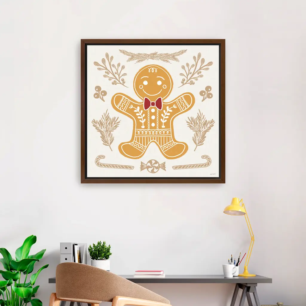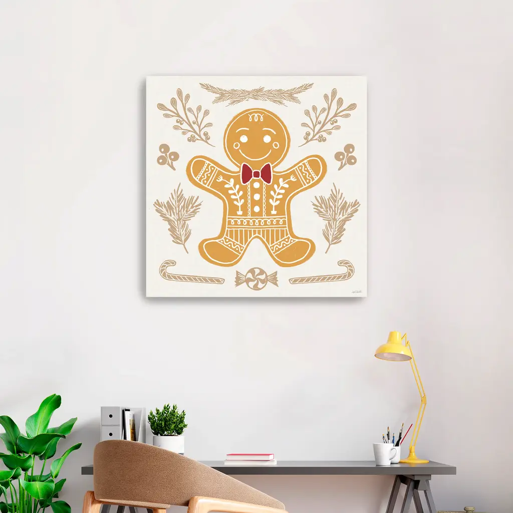 Celebrate the sweetness of the season with this charming gingerbread canvas print that brings holiday cheer to your walls. With warm tones and whimsical details, it’s a delightful accent for kitchens, entryways, or festive living spaces. Our Gallery Wrap Canvas Prints are proudly assembled with high quality materials in California, USA. Each piece is printed on a thick, archival grade canvas using Giclee technology. It is then hand-stretched by our experienced artisans over solid wood bars, which will not warp over time. The final product is a piece personally crafted for you to confidently display on your wall. Care and Assembly: Ensure that the location of your piece has little to no exposure to heat, sunlight, and moisture. Wipe clean, only if needed. Each piece includes hanging hardware to hang on your wall horizontally.