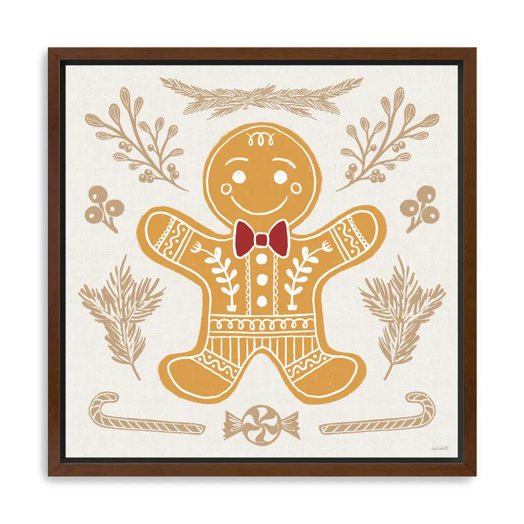 Celebrate the sweetness of the season with this charming gingerbread canvas print that brings holiday cheer to your walls. With warm tones and whimsical details, it’s a delightful accent for kitchens, entryways, or festive living spaces. Our Gallery Wrap Canvas Prints are proudly assembled with high quality materials in California, USA. Each piece is printed on a thick, archival grade canvas using Giclee technology. It is then hand-stretched by our experienced artisans over solid wood bars, which will not warp over time. The final product is a piece personally crafted for you to confidently display on your wall. Care and Assembly: Ensure that the location of your piece has little to no exposure to heat, sunlight, and moisture. Wipe clean, only if needed. Each piece includes hanging hardware to hang on your wall horizontally.