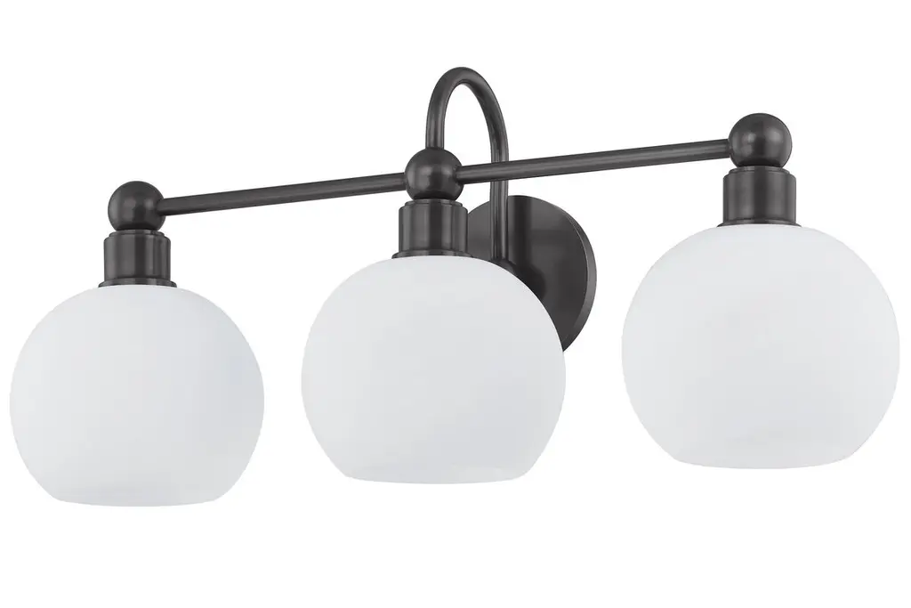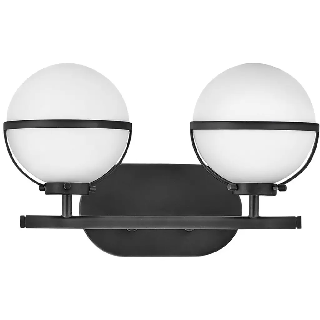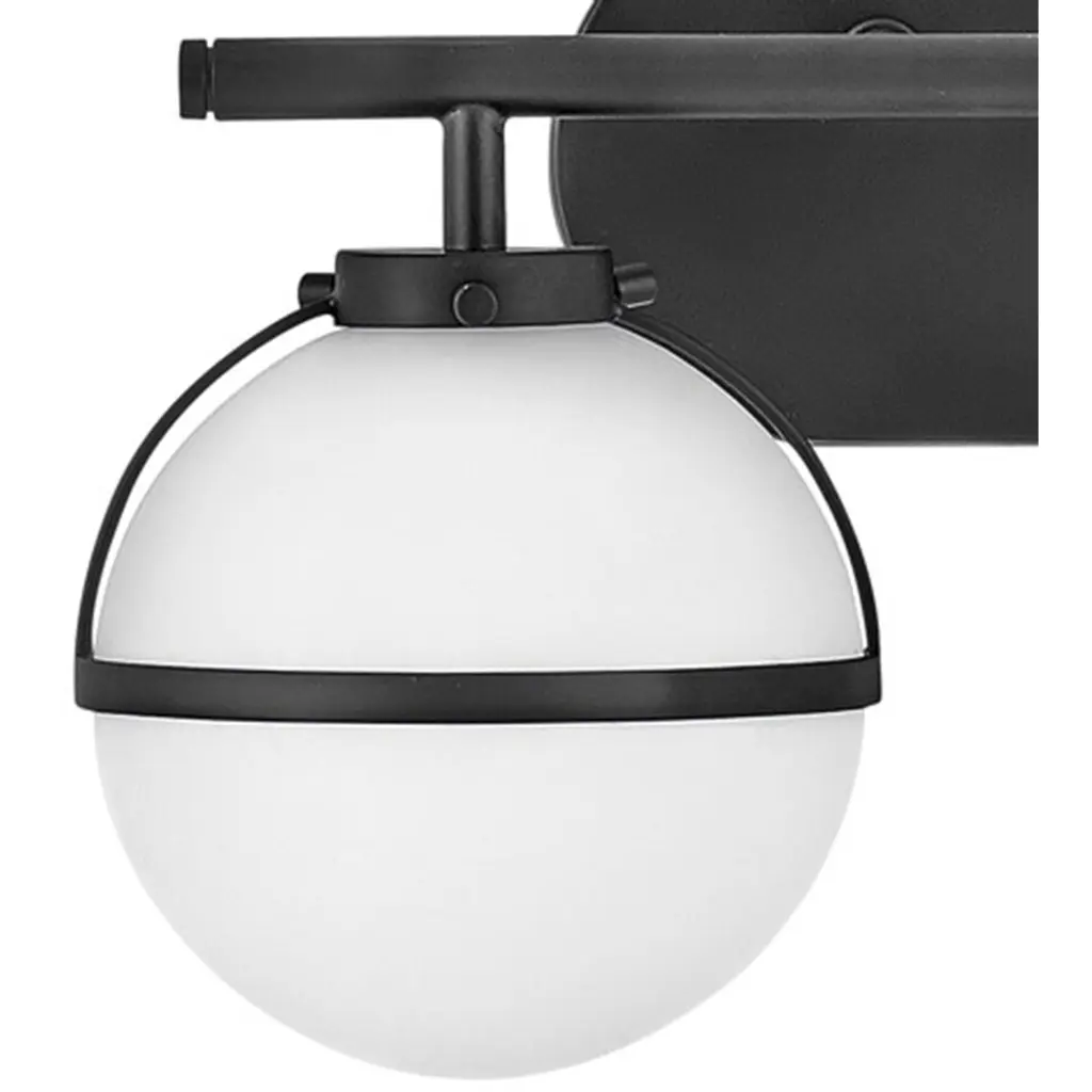The distinctive vintage globe design of Hollis invokes a mid-century mood, yet its clean lines and sophisticated silhouette provide versatility for a variety of décors. With a dramatically elongated stem, the one light sconce steals the show. Etched opal glass globes shine against a Heritage Brass or a Black finish.