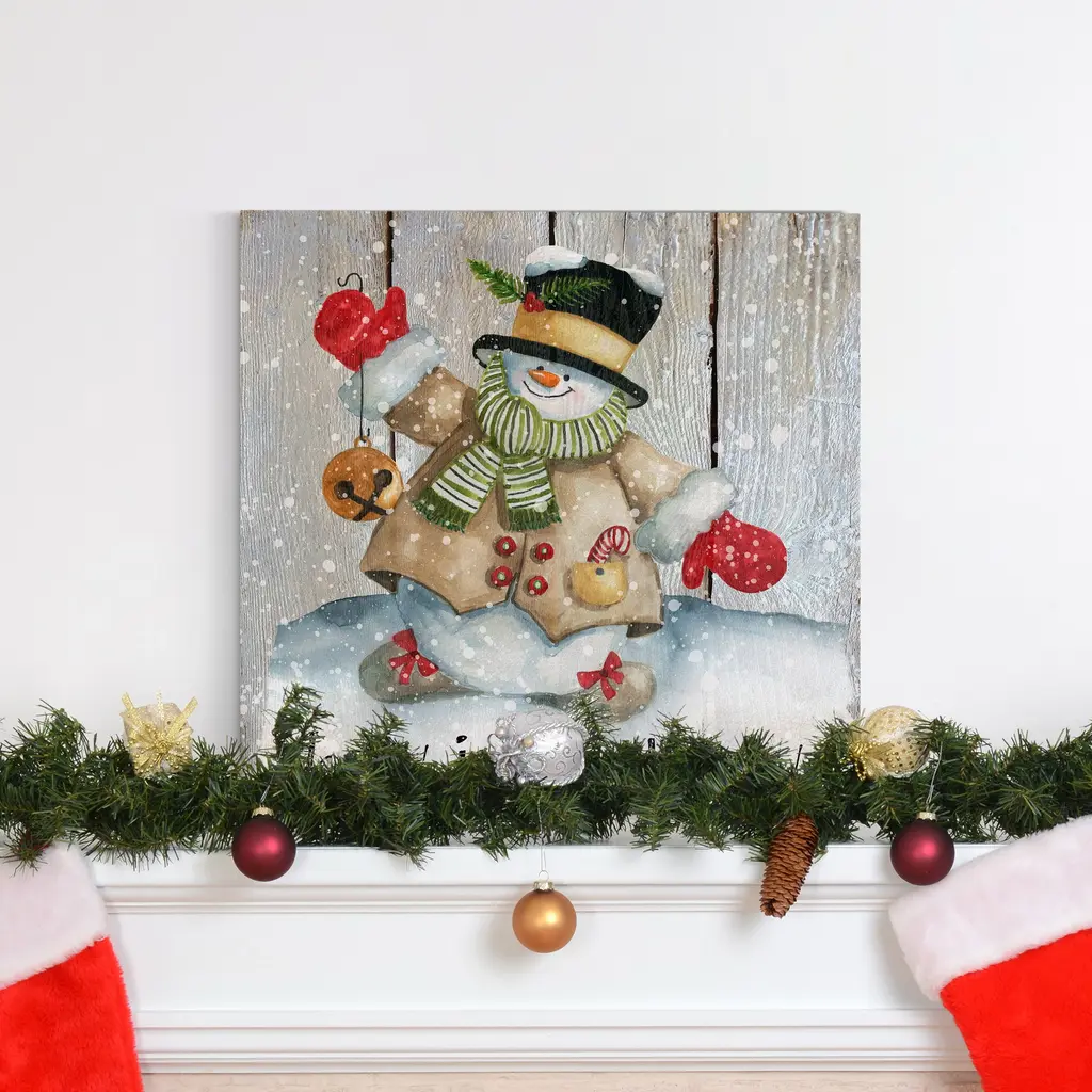 Holly Jolly Snowman-Premium Gallery Wrapped Canvas - Ready to Hang A premium hand stretched gallery wrapped canvas print created to last. Featuring a beveled a solid wood stretcher bar, each piece comes ready to hand 5 SIZES AVAILABLE 10''X10'' - Overall Size 16''x16'' - Overall Size 24''x24'' - Overall Size 32''x32'' - Overall Size 40''x40'' - Overall Size Each piece is made to order. Built to Last Each piece comes ready to hang Solid wood stretcher Fade and Water resistant Made domestically