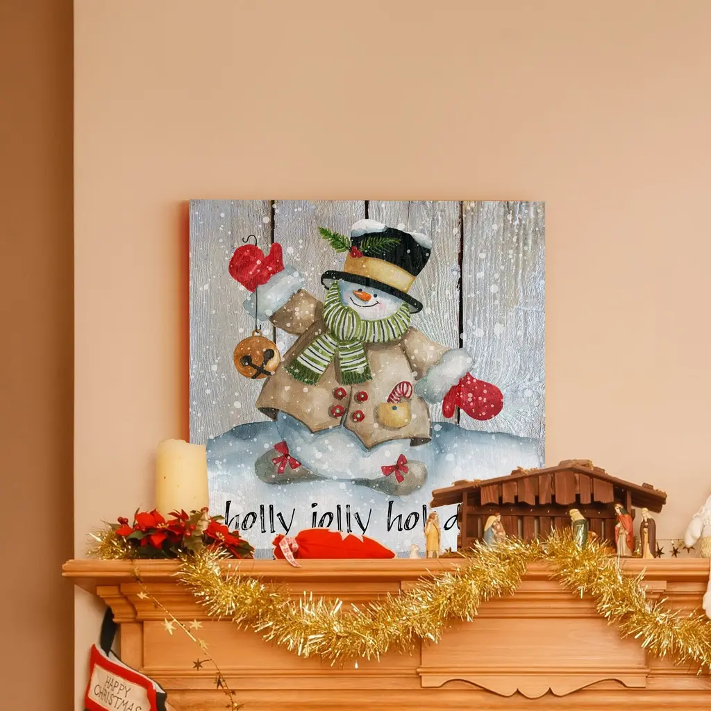 Holly Jolly Snowman-Premium Gallery Wrapped Canvas - Ready to Hang A premium hand stretched gallery wrapped canvas print created to last. Featuring a beveled a solid wood stretcher bar, each piece comes ready to hand 5 SIZES AVAILABLE 10''X10'' - Overall Size 16''x16'' - Overall Size 24''x24'' - Overall Size 32''x32'' - Overall Size 40''x40'' - Overall Size Each piece is made to order. Built to Last Each piece comes ready to hang Solid wood stretcher Fade and Water resistant Made domestically