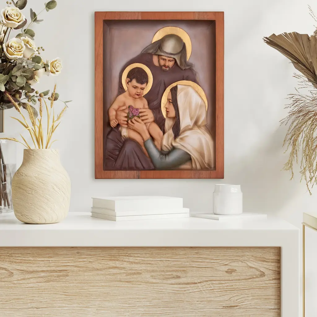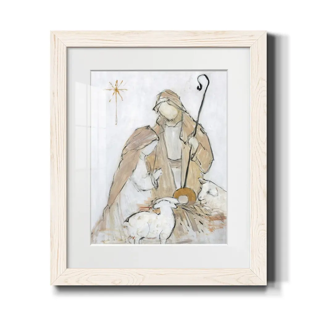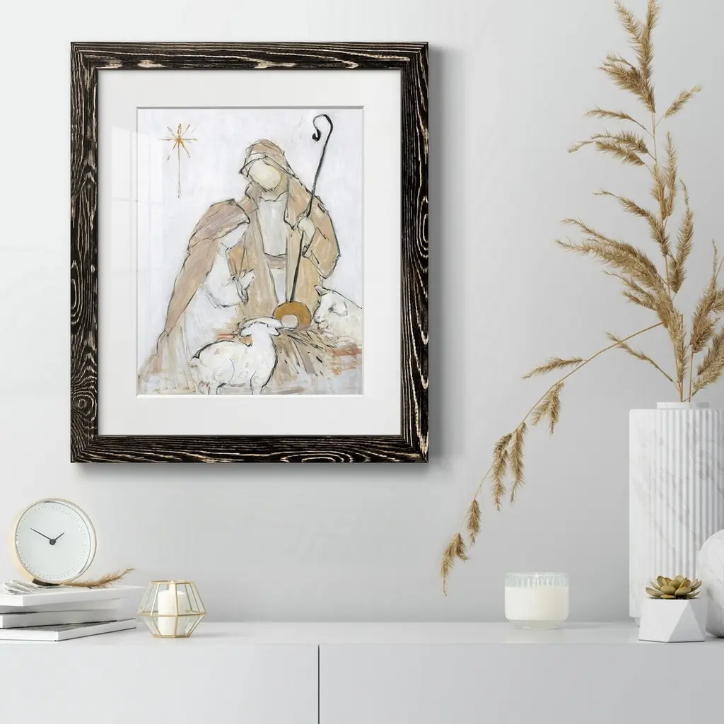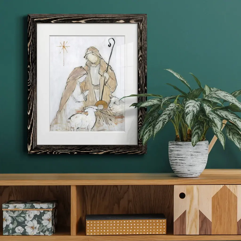 Holy Night Family-Premium Framed Print - Ready to Hang Framed in distressed wood and available in an array of sizes and colors Each piece is joined and assembled by hand and comes ready to hang 2 INCH BEVELED MATTE BOARD PLEXIGLASS COVERING READY TO HANG MADE IN THE USA SOLID WOOD FRAME MADE IN USA FADE RESISTANT GICLEE PRINTING on Canvas or Paper