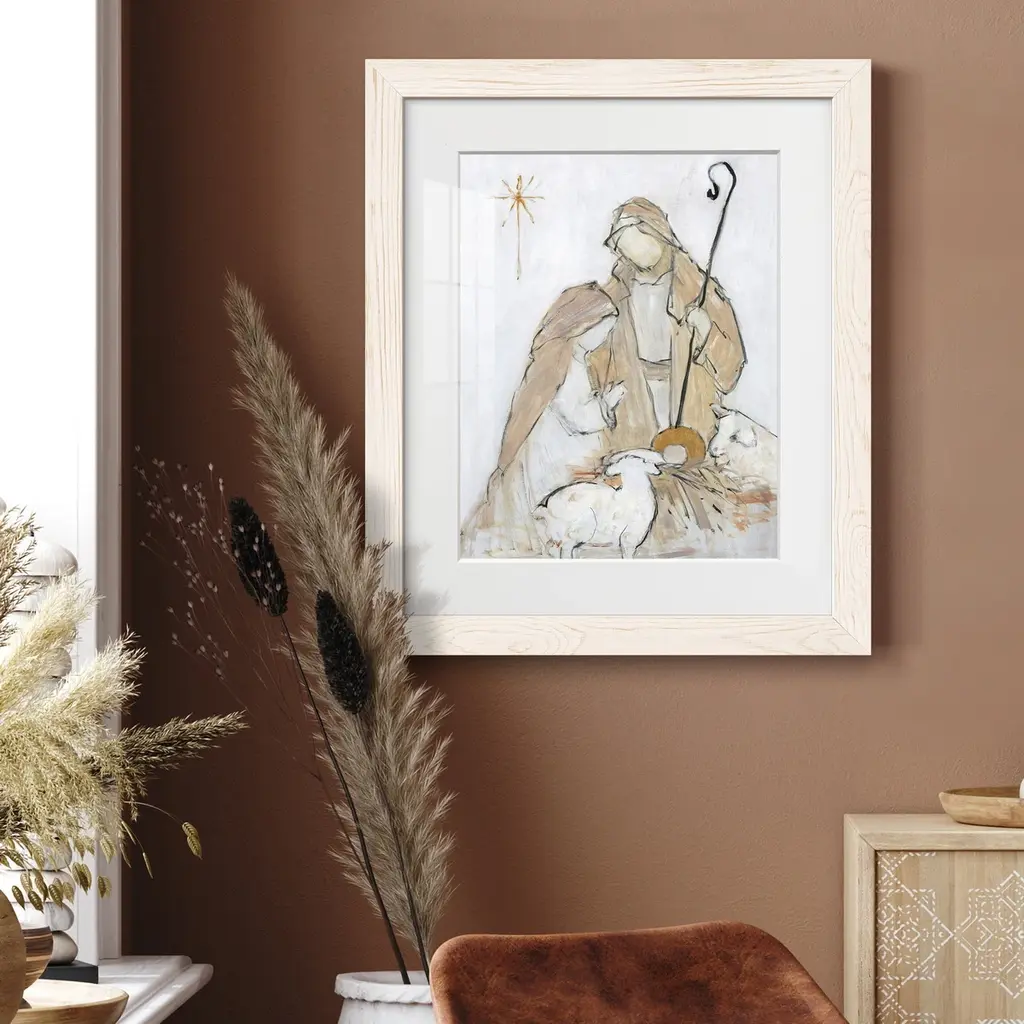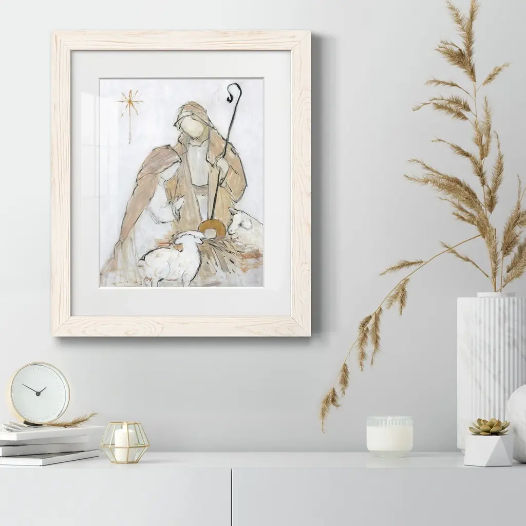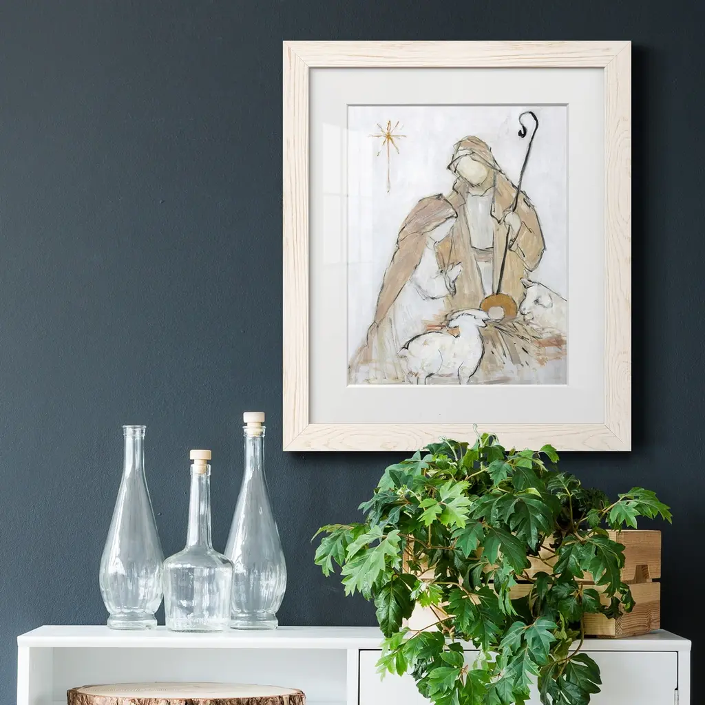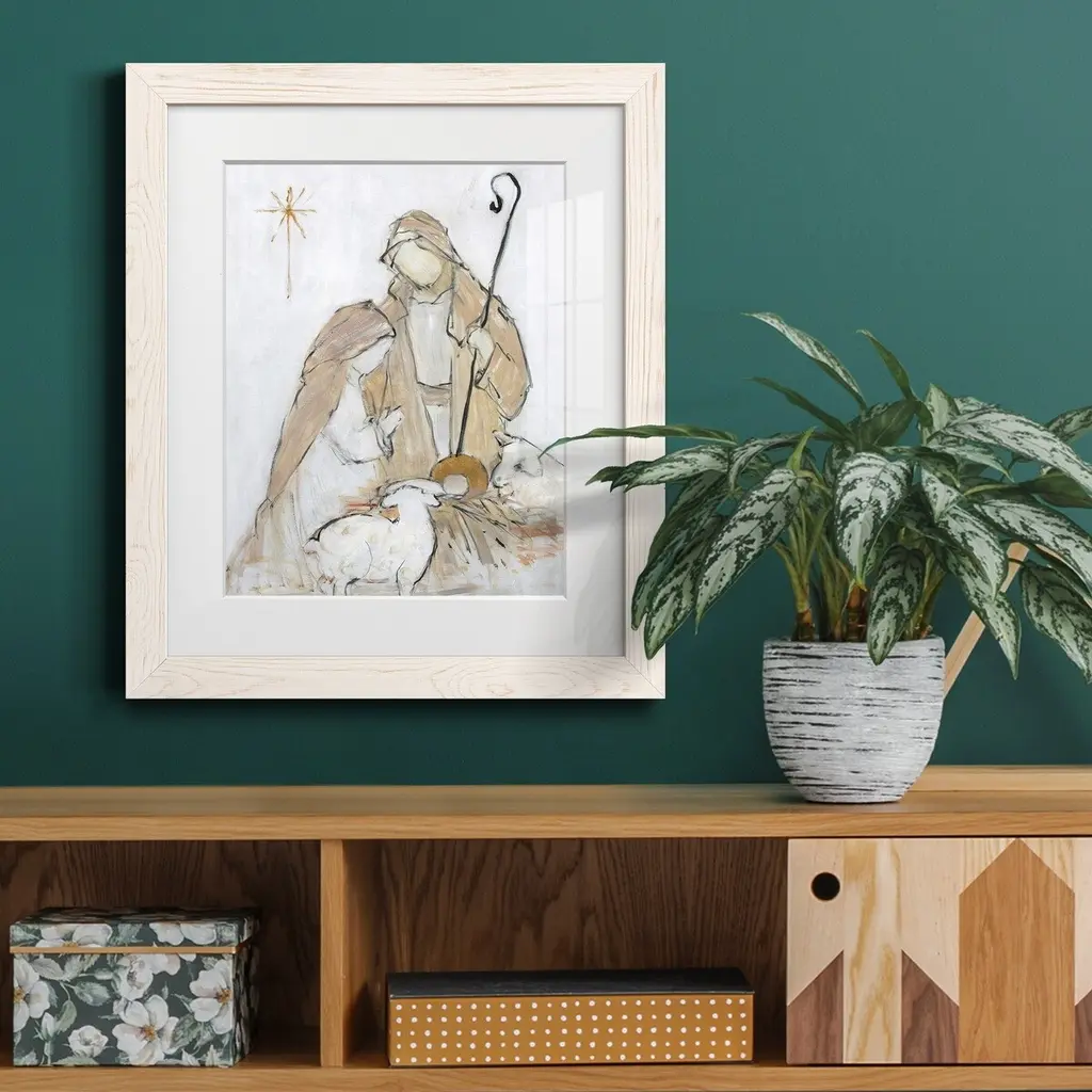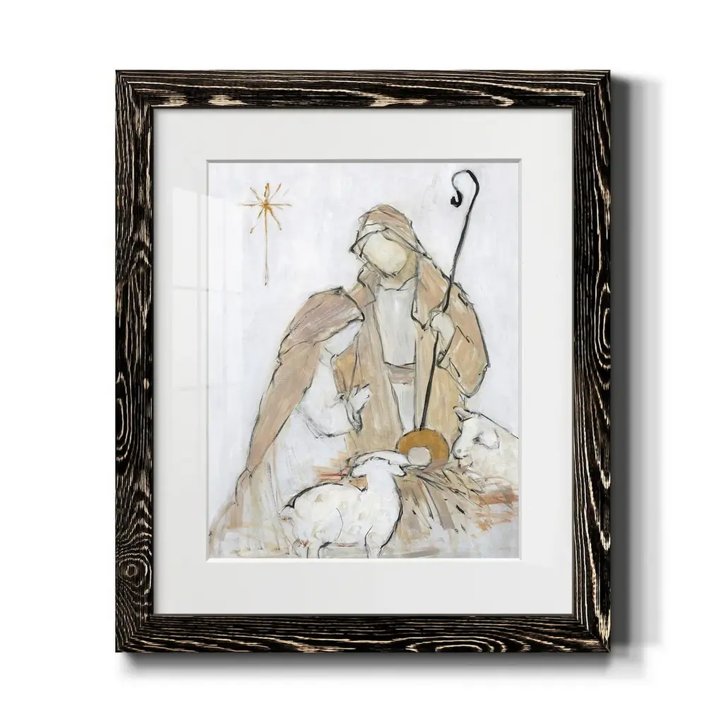 Holy Night Family-Premium Framed Print - Ready to Hang Framed in distressed wood and available in an array of sizes and colors Each piece is joined and assembled by hand and comes ready to hang 2 INCH BEVELED MATTE BOARD PLEXIGLASS COVERING READY TO HANG MADE IN THE USA SOLID WOOD FRAME MADE IN USA FADE RESISTANT GICLEE PRINTING on Canvas or Paper