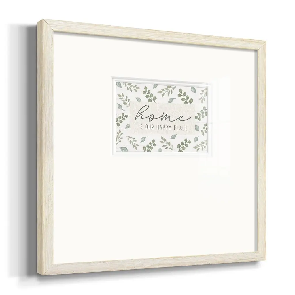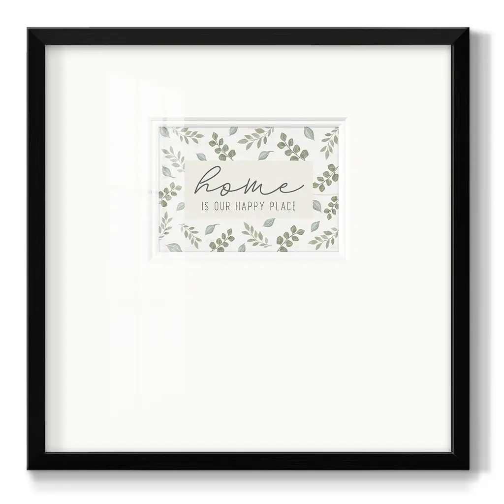 Home is Our Happy PlacePremium Framed Print A framed cold pressed paper print featuring superior double matting and quality frame. 2 SIZES AVAILABLE 16''X16''' - Overall Size 20''X20''' - Overall Size Each piece is made to order. Each piece comes with hanging hardware. Made in the USA Ready to Hang Giclee Paper Print Plexiglass Beveled Matt Board Double Matte Board
