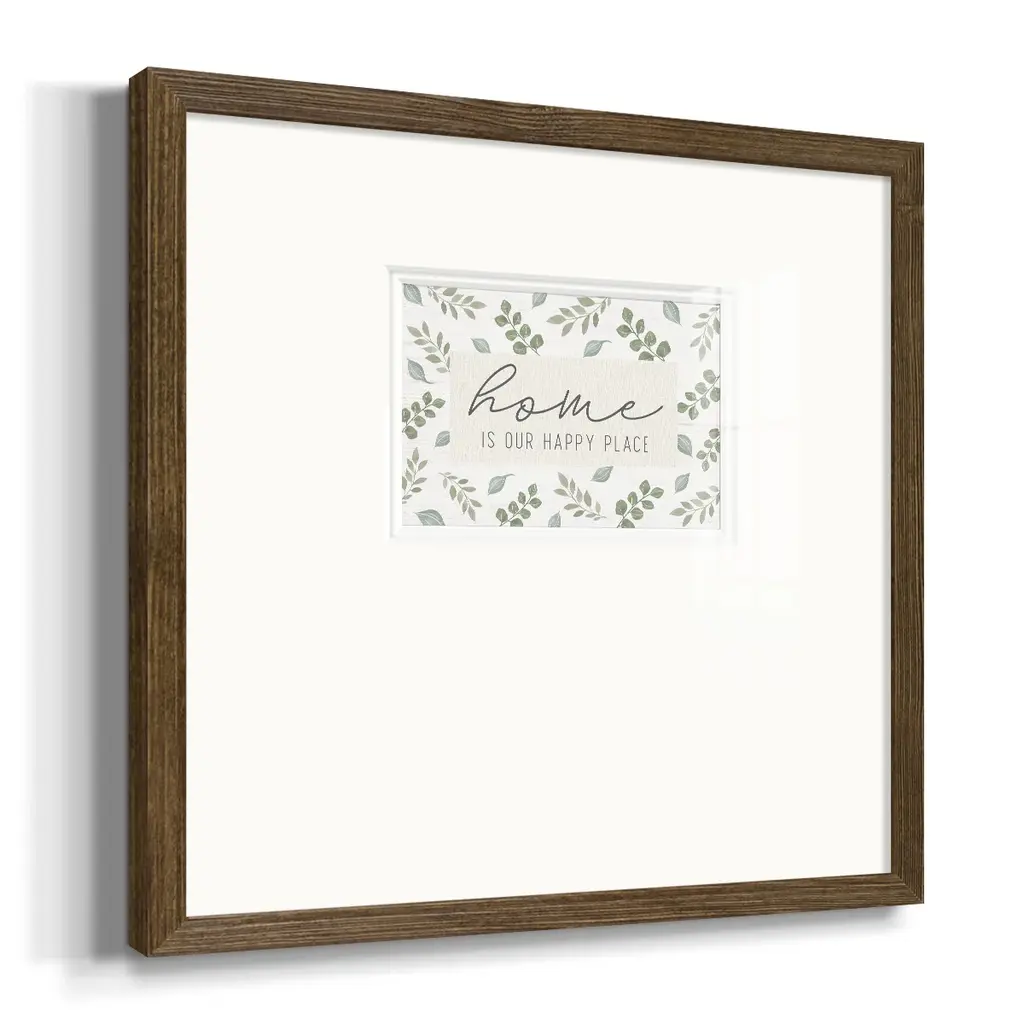 Home is Our Happy PlacePremium Framed Print A framed cold pressed paper print featuring superior double matting and quality frame. 2 SIZES AVAILABLE 16''X16''' - Overall Size 20''X20''' - Overall Size Each piece is made to order. Each piece comes with hanging hardware. Made in the USA Ready to Hang Giclee Paper Print Plexiglass Beveled Matt Board Double Matte Board