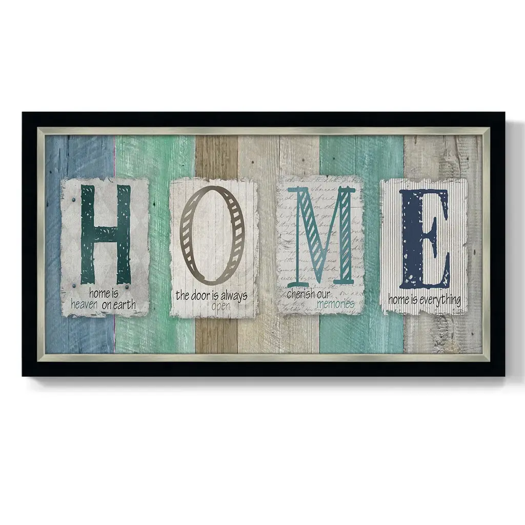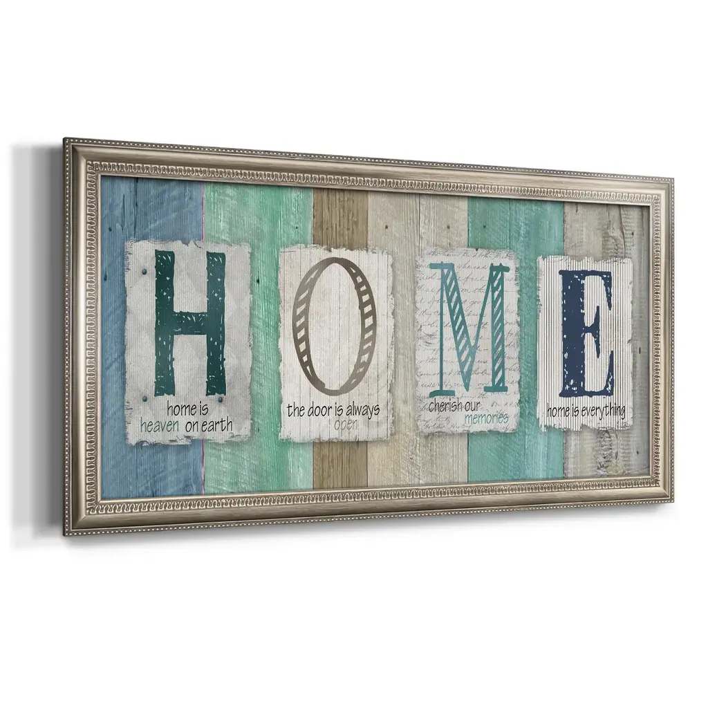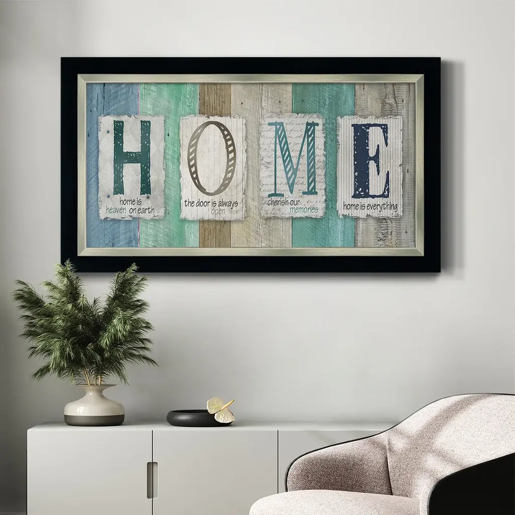 Home Premium Framed Canvas- Ready to Hang A Premium Framed Canvas created to last. Framed in distressed wood and available in an array of sizes and colors Featuring a beveled a solid wood stretcher bar, each piece comes ready to hand 3 SIZES AVAILABLE 21''X37'' - Overall Size 25''X45'' - Overall Size 29''x53'' - Overall Size Each piece is made to order. Each piece comes with hanging hardware. Made in the USA Ready to Hang Giclee Paper Print Acrylic Glass Beveled Matt Board