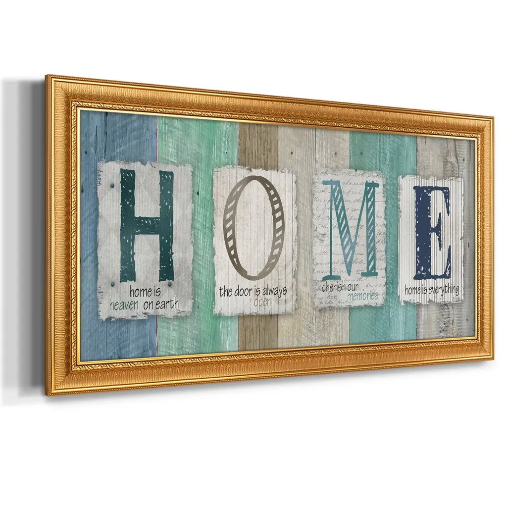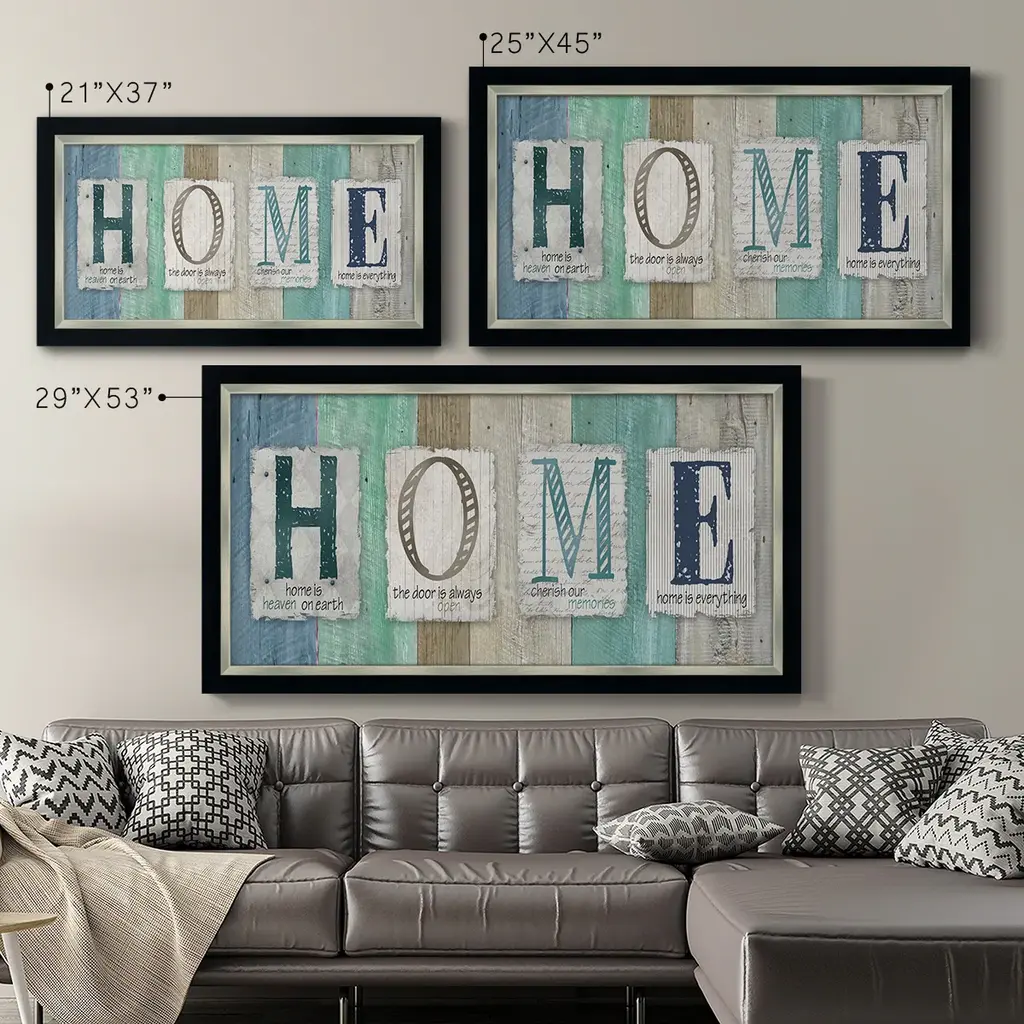 Home Premium Framed Canvas- Ready to Hang A Premium Framed Canvas created to last. Framed in distressed wood and available in an array of sizes and colors Featuring a beveled a solid wood stretcher bar, each piece comes ready to hand 3 SIZES AVAILABLE 21''X37'' - Overall Size 25''X45'' - Overall Size 29''x53'' - Overall Size Each piece is made to order. Each piece comes with hanging hardware. Made in the USA Ready to Hang Giclee Paper Print Acrylic Glass Beveled Matt Board