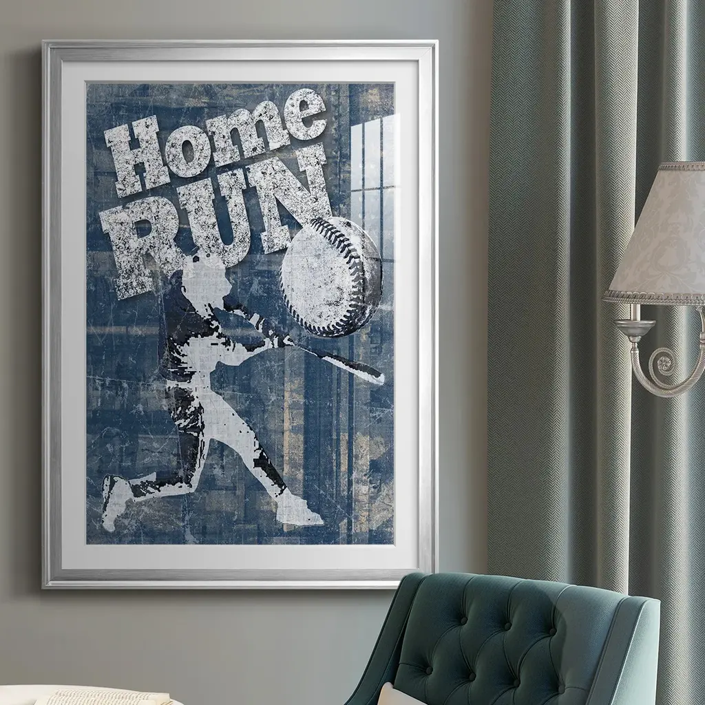 Home Run Hitter Premium Framed Print - Ready to Hang A Premium Framed Print created to last. Framed in distressed wood and available in an array of sizes and colors Featuring a beveled a solid wood stretcher bar, each piece comes ready to hand 4 SIZES AVAILABLE 30.5''X42.5'' - Overall Size 26.5'X36.5'' - Overall Size 22.5''x30.5'' - Overall Size 18.5''x24.5'' - Overall Size Each piece is made to order. Each piece comes with hanging hardware. Made in the USA Ready to Hang Giclee Paper Print Acrylic Glass Beveled Matt Board