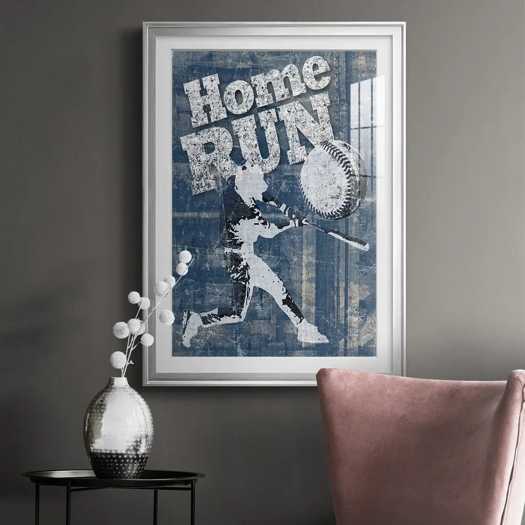 Home Run Hitter Premium Framed Print - Ready to Hang A Premium Framed Print created to last. Framed in distressed wood and available in an array of sizes and colors Featuring a beveled a solid wood stretcher bar, each piece comes ready to hand 4 SIZES AVAILABLE 30.5''X42.5'' - Overall Size 26.5'X36.5'' - Overall Size 22.5''x30.5'' - Overall Size 18.5''x24.5'' - Overall Size Each piece is made to order. Each piece comes with hanging hardware. Made in the USA Ready to Hang Giclee Paper Print Acrylic Glass Beveled Matt Board
