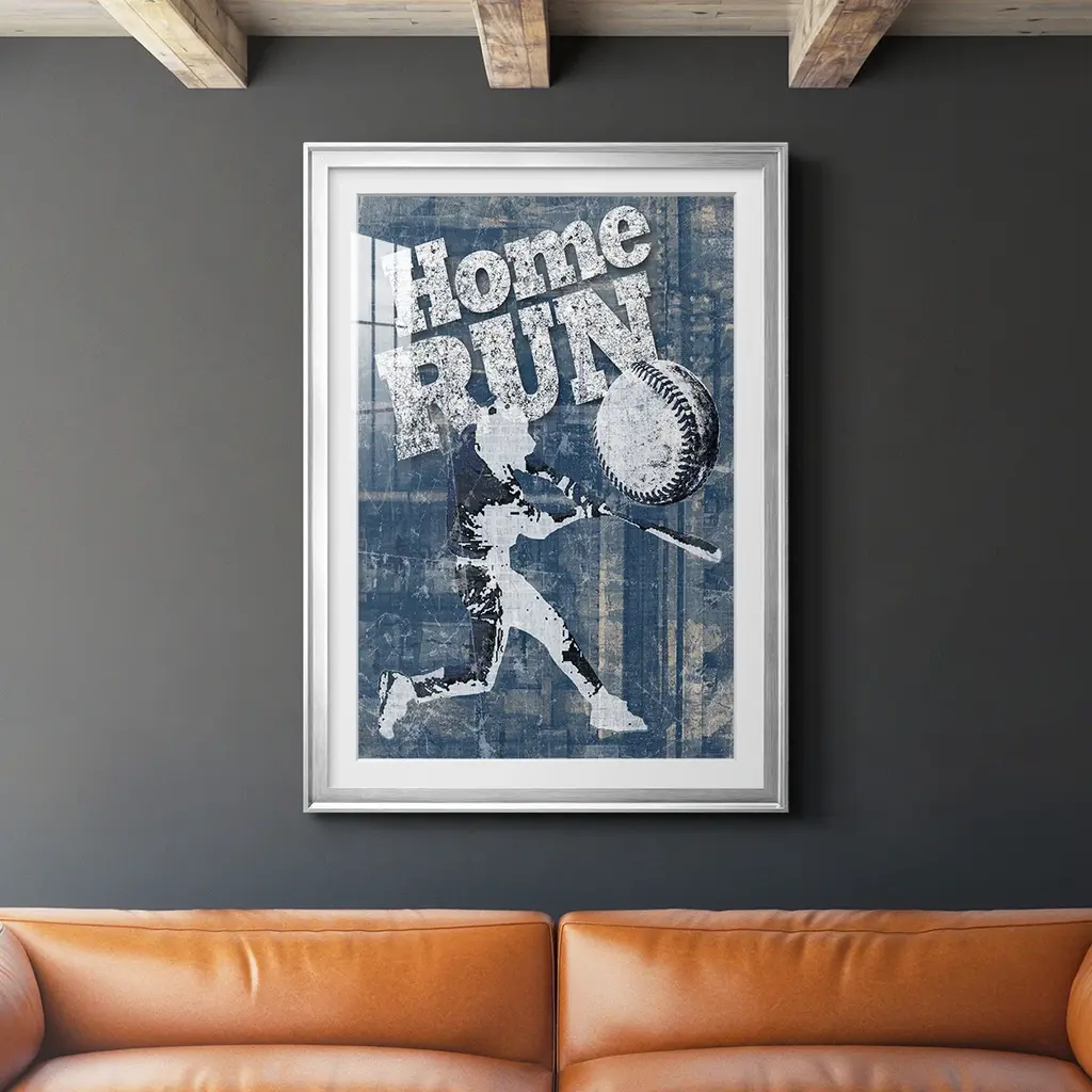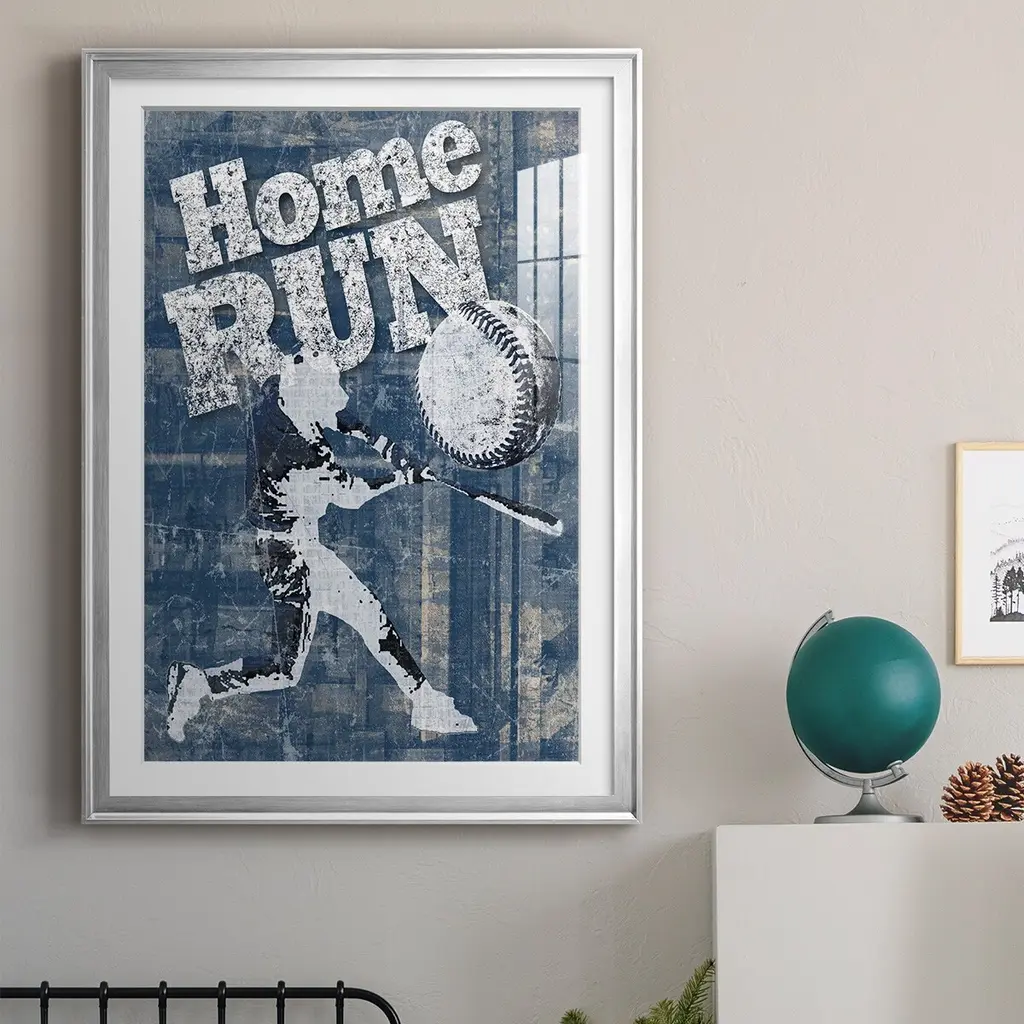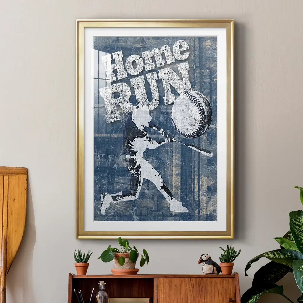 Home Run Hitter Premium Framed Print - Ready to Hang A Premium Framed Print created to last. Framed in distressed wood and available in an array of sizes and colors Featuring a beveled a solid wood stretcher bar, each piece comes ready to hand 4 SIZES AVAILABLE 30.5''X42.5'' - Overall Size 26.5'X36.5'' - Overall Size 22.5''x30.5'' - Overall Size 18.5''x24.5'' - Overall Size Each piece is made to order. Each piece comes with hanging hardware. Made in the USA Ready to Hang Giclee Paper Print Acrylic Glass Beveled Matt Board
