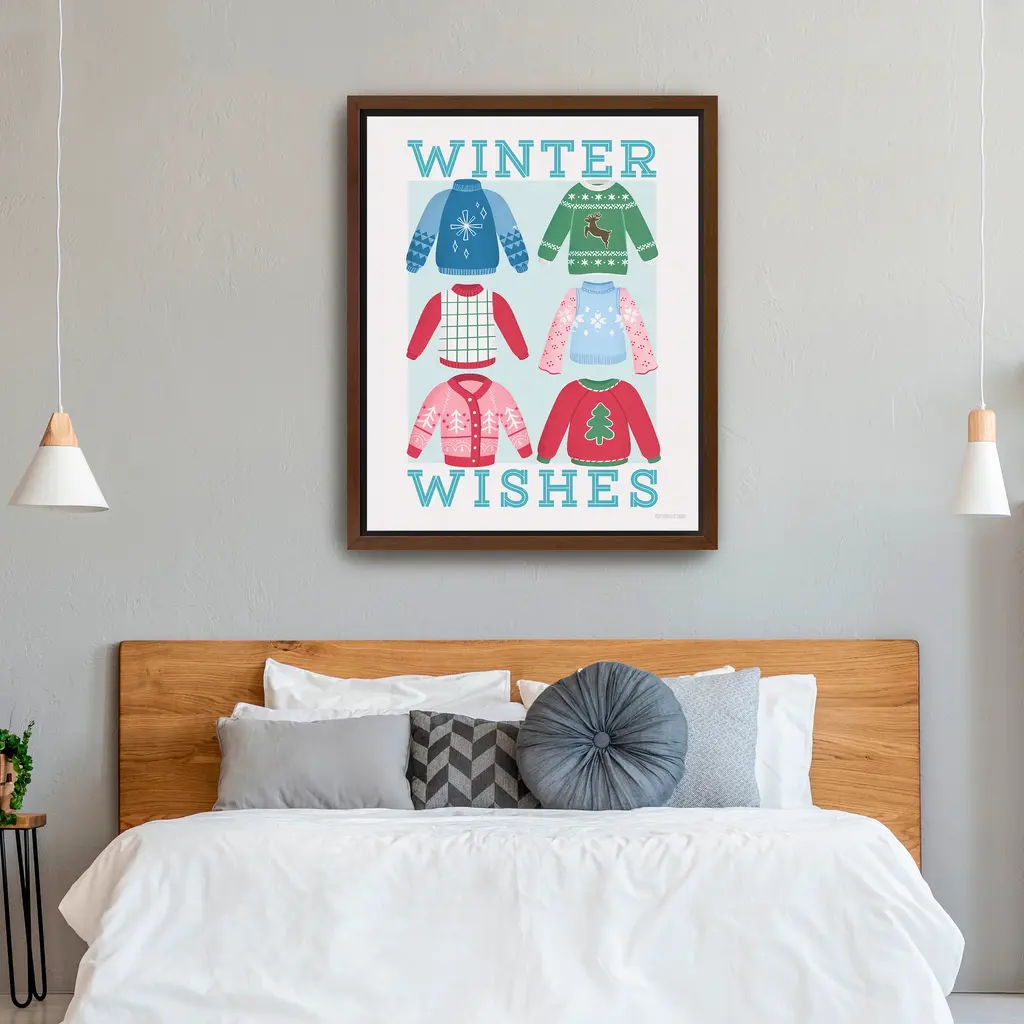 Celebrate the cozy charm of the season with this festive canvas print featuring colorful holiday sweaters and cheerful winter vibes. The playful patterns and vibrant palette bring warmth and personality to your Christmas decor. Our Gallery Wrap Canvas Prints are proudly assembled with high quality materials in California, USA. Each piece is printed on a thick, archival grade canvas using Giclee technology. It is then hand-stretched by our experienced artisans over solid wood bars, which will not warp over time. The final product is a piece personally crafted for you to confidently display on your wall. Care and Assembly: Ensure that the location of your piece has little to no exposure to heat, sunlight, and moisture. Wipe clean, only if needed. Each piece includes hanging hardware to hang on your wall vertically.